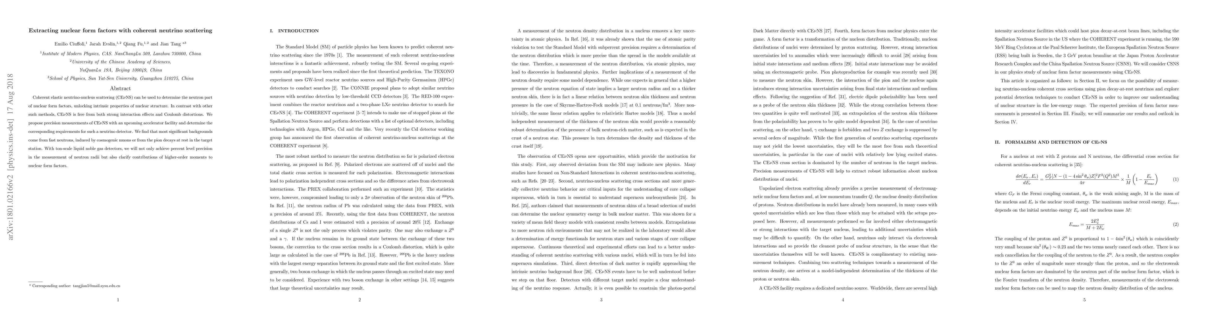Coherent elastic neutrino-nucleus scattering (CEvNS) can be used to determine the neutron part of nuclear form factors, unlocking intrinsic properties of nuclear structure. In contrast with other such methods, CEvNS is free from both strong interaction effects and Coulomb distortions. We propose precision measurements of CEvNS with an upcoming accelerator facility and determine the corresponding requirements for such a neutrino detector. We find that most significant backgrounds come from fast neutrons, induced by cosmogenic muons or from the pion decays at rest in the target station. With ton-scale liquid noble gas detectors, we will not only achieve percent level precision in the measurement of neutron radii but also clarify contributions of higher-order moments to nuclear form factors.