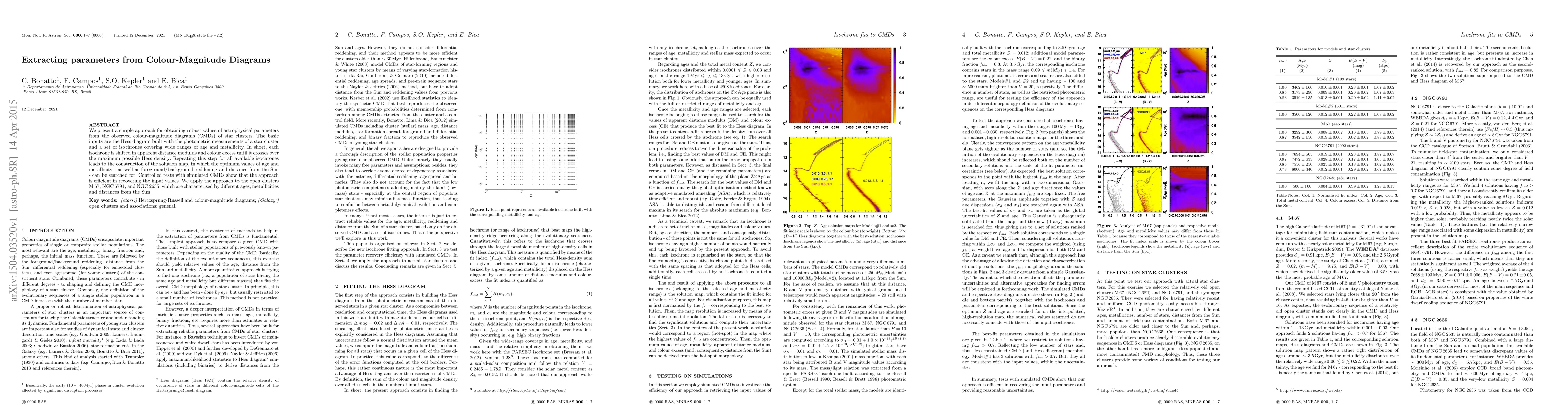 This paper introduces a method for extracting astrophysical parameters from colour-magnitude diagrams (CMDs) of star clusters by matching isochrones to the observed Hess diagram. The approach accurately determines age, metallicity, and reddening, validated by tests on simulated and real clusters like M\,67, NGC\,6791, and NGC\,2635.
