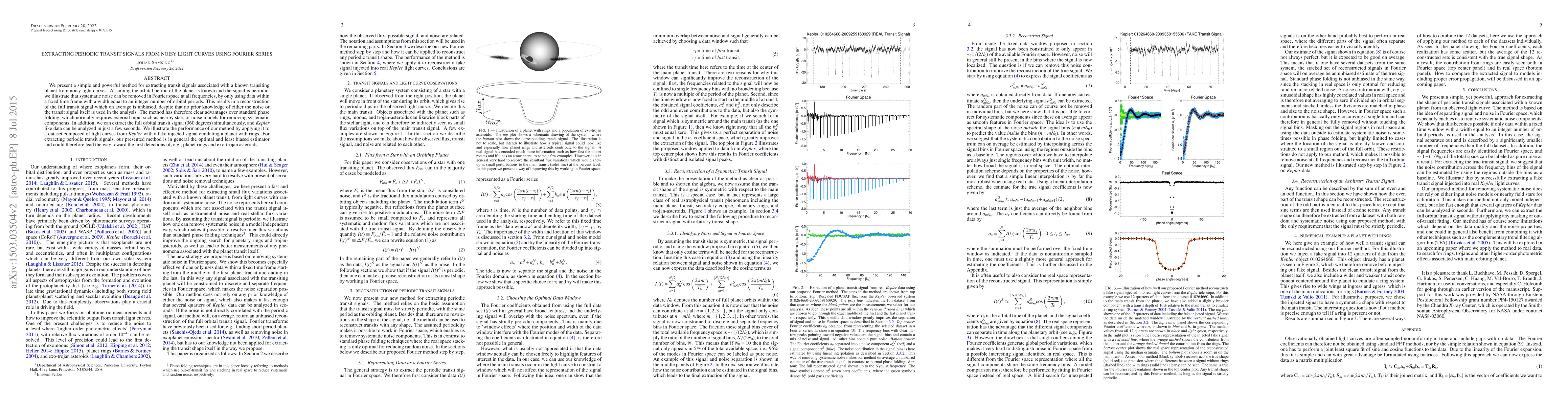 This paper introduces a novel method for extracting periodic transit signals from noisy light curves using Fourier series, which effectively removes systematic noise without requiring prior knowledge of the noise or signal. The method reconstructs the full transit signal in a few seconds, offering advantages over standard phase folding techniques.