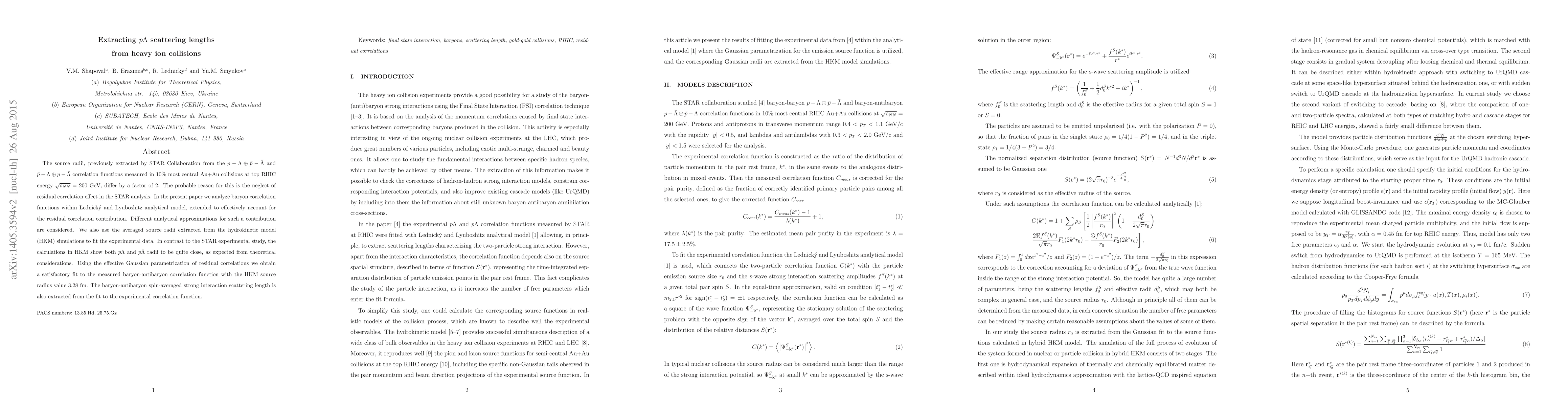 This paper reanalyzes $p\Lambda$ scattering lengths from heavy ion collisions, attributing discrepancies in previous results to residual correlation effects. Using an extended Lednicky and Lyuboshitz model and hydrokinetic simulations, it finds $p\Lambda$ and $p\bar{\Lambda}$ radii to be similar, extracting a baryon-antibaryon scattering length of 3.28 fm.