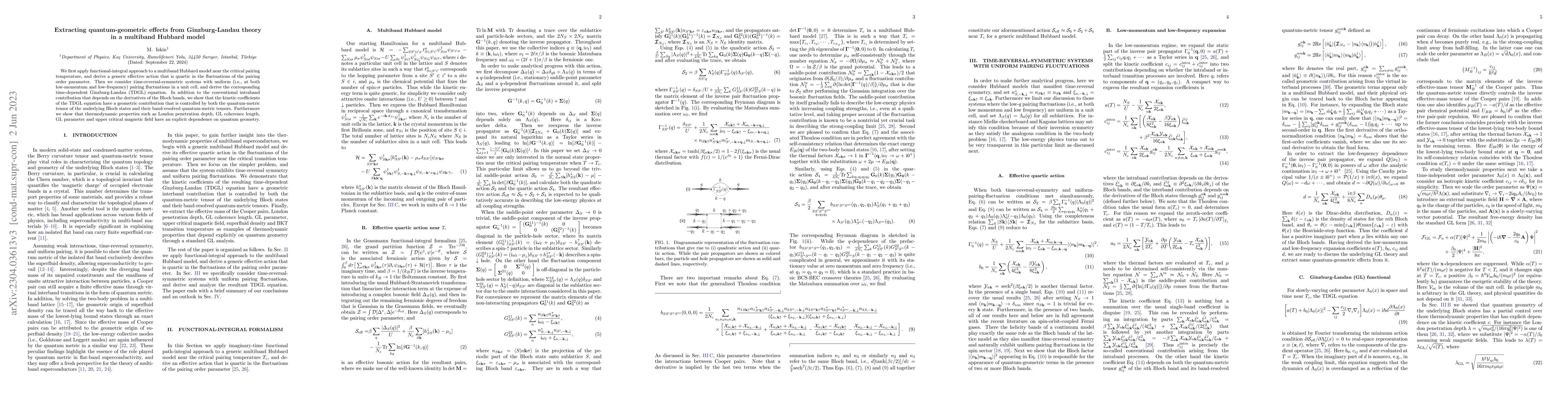 This paper derives an effective action for a multiband Hubbard model using a functional-integral approach, revealing a time-dependent Ginzburg-Landau equation with geometric contributions from quantum-metric tensors. It demonstrates that thermodynamic properties are influenced by quantum-geometric effects.