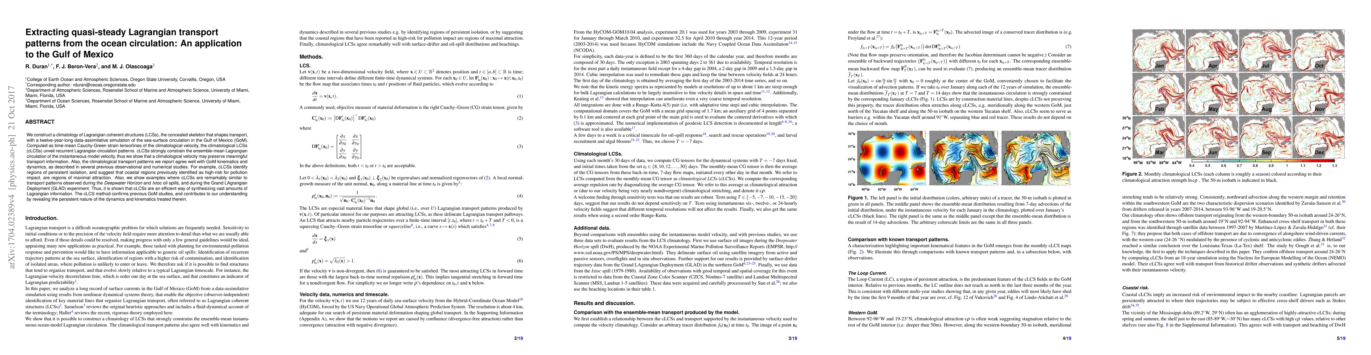 This study constructs a climatology of Lagrangian coherent structures (LCSs) from a twelve-year simulation of the Gulf of Mexico's sea-surface circulation, revealing persistent transport patterns. The climatological LCSs (cLCSs) effectively capture the dynamics and kinematics of the Gulf, aligning with previous observations and highlighting regions of persistent isolation and maximal attraction.