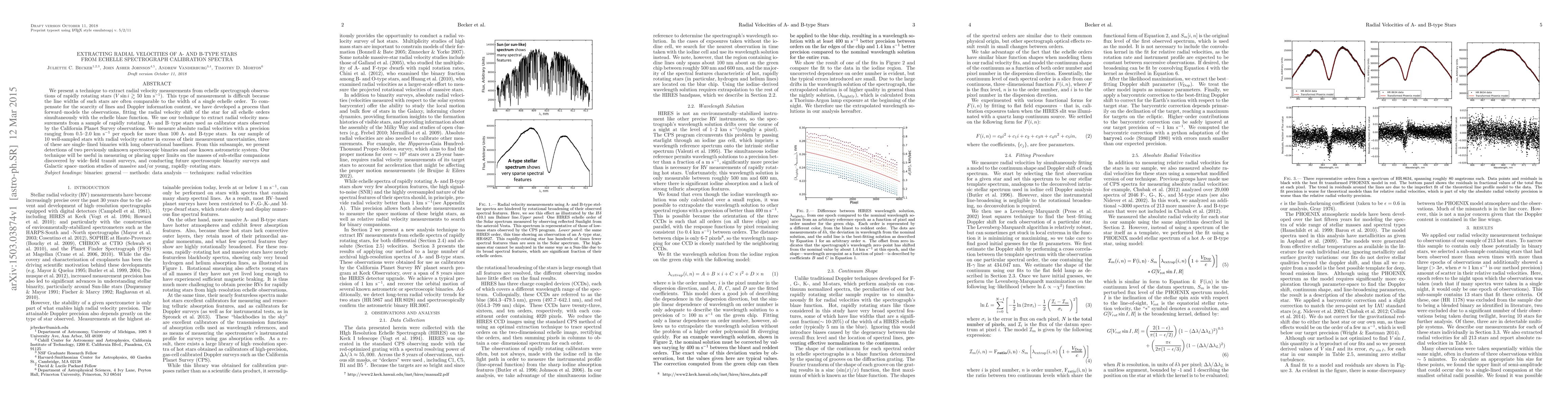 This paper introduces a method to extract radial velocities from echelle spectrograph data for rapidly rotating A- and B-type stars, achieving precision of 0.5-2.0 km s$^{-1}$. The technique identifies previously unknown spectroscopic binaries and will aid in future studies of sub-stellar companions and Galactic space motions.