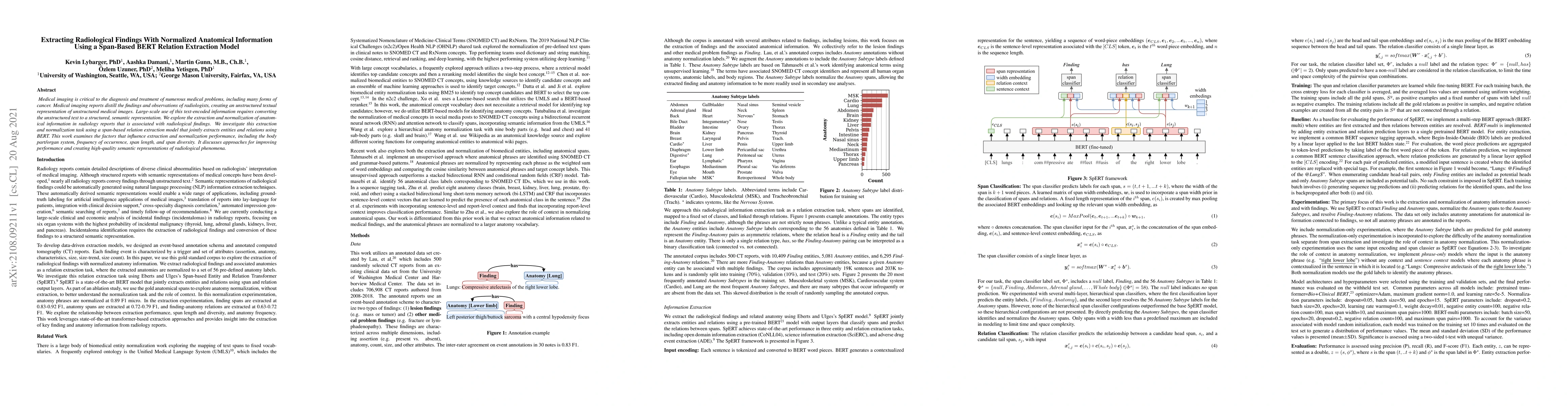 This paper investigates using a span-based BERT model to extract and normalize anatomical information from radiology reports, focusing on factors like body part, frequency, span length, and diversity to improve the structured representation of radiological findings. The study proposes methods for enhancing performance and creating precise semantic representations.