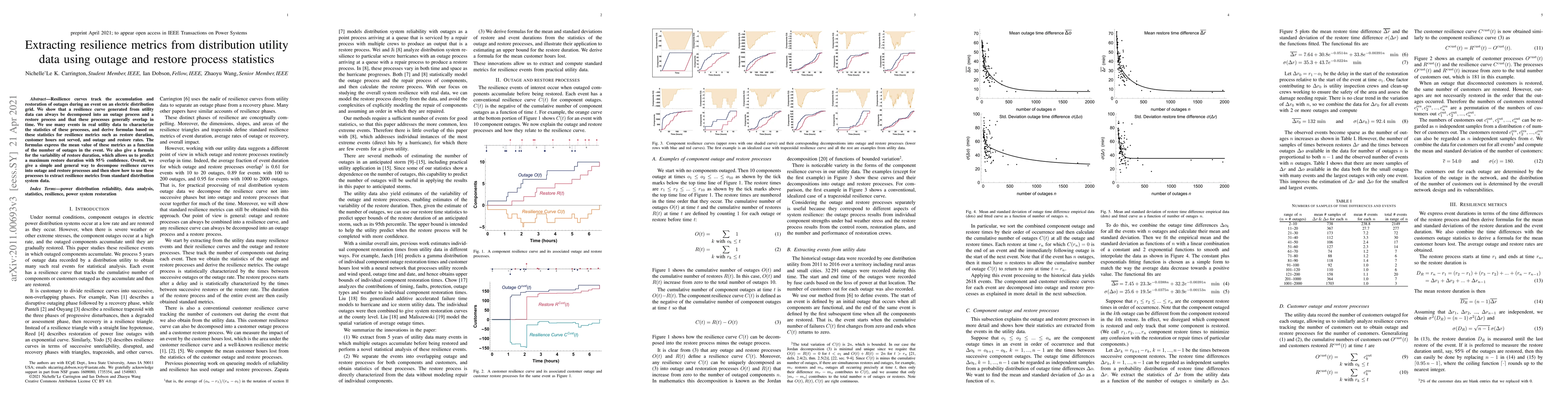 Resilience curves track the accumulation and restoration of outages during an event on an electric distribution grid. We show that a resilience curve generated from utility data can always be decomposed into an outage process and a restore process and that these processes generally overlap in time. We use many events in real utility data to characterize the statistics of these processes, and derive formulas based on these statistics for resilience metrics such as restore duration, customer hours not served, and outage and restore rates. The formulas express the mean value of these metrics as a function of the number of outages in the event. We also give a formula for the variability of restore duration, which allows us to predict a maximum restore duration with 95% confidence. Overall, we give a simple and general way to decompose resilience curves into outage and restore processes and then show how to use these processes to extract resilience metrics from standard distribution system data.