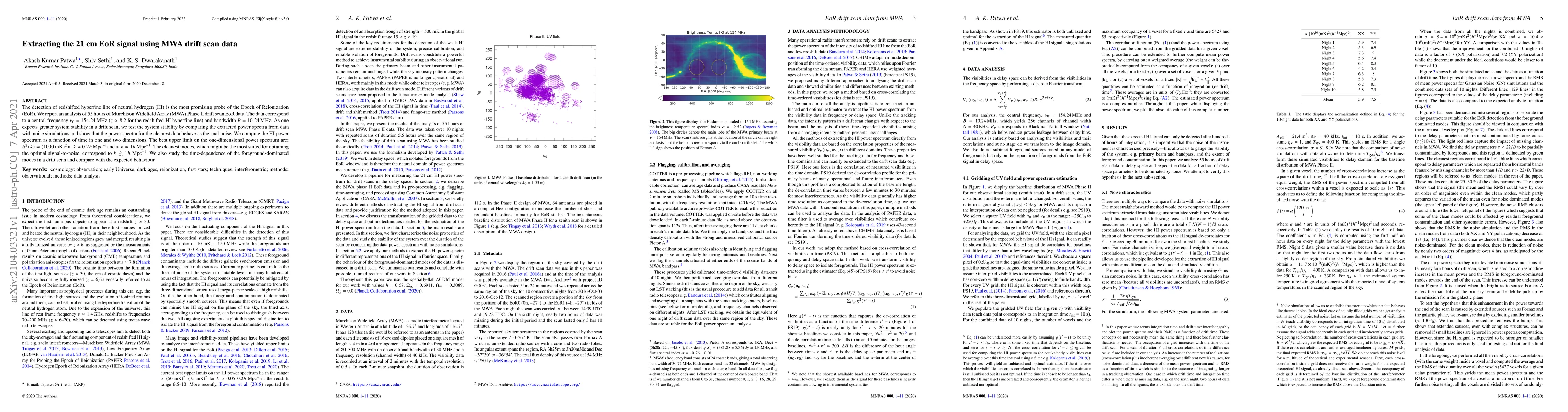 Researchers analyzed 55 hours of MWA data to detect the redshifted HI hyperfine line from the Epoch of Reionization, finding upper limits on power spectra that could reveal early universe signals.