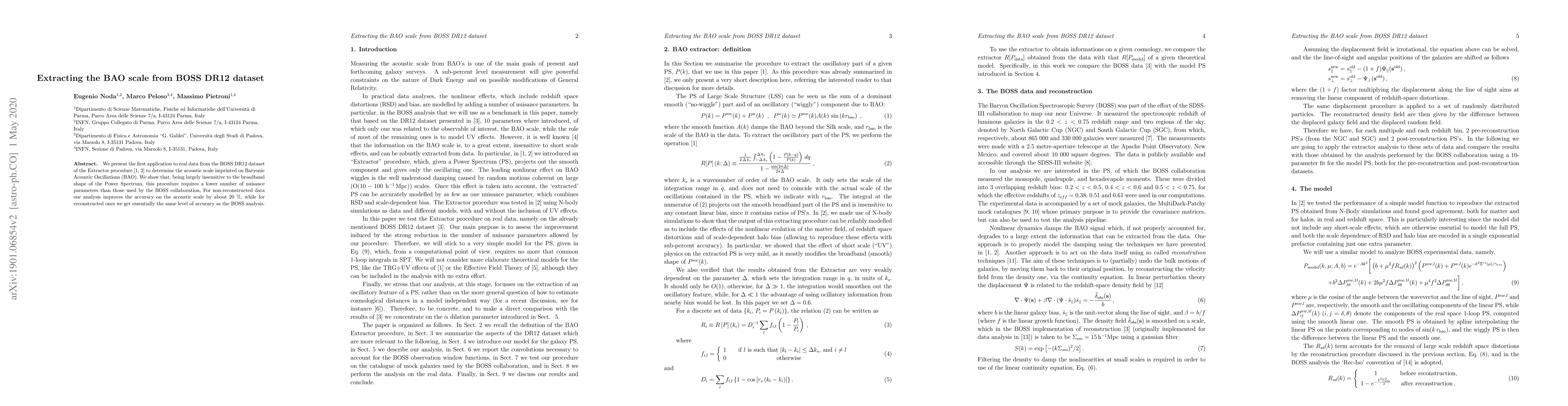 We present the first application to real data from the BOSS DR12 dataset of the Extractor procedure to determine the acoustic scale imprinted on Baryonic Acoustic Oscillations (BAO). We show that, being largely insensitive to the broadband shape of the Power Spectrum, this procedure requires a lower number of nuisance parameters than those used by the BOSS collaboration, For non-reconstructed data our analysis improves the accuracy on the acoustic scale by about 20 %, while for reconstructed ones we get essentially the same level of accuracy as the BOSS analysis.