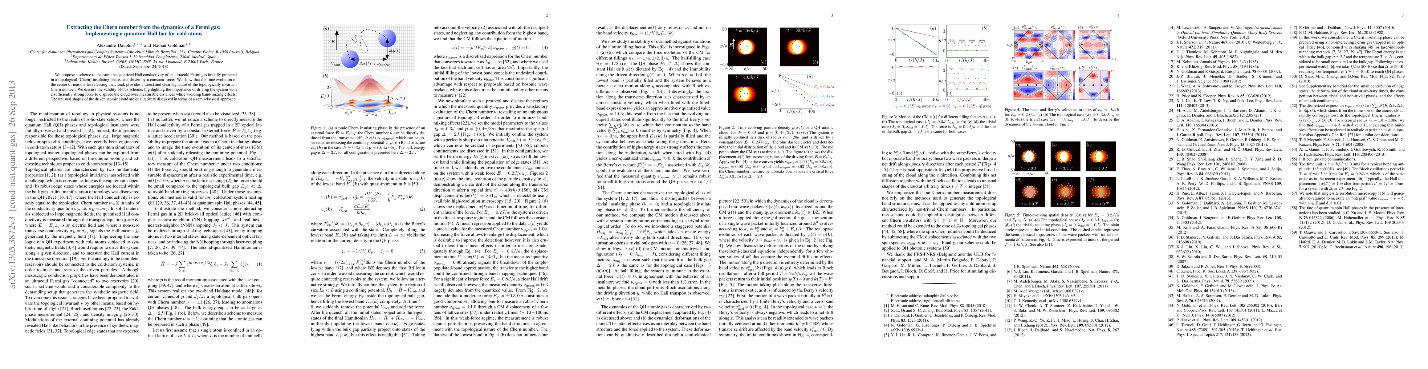 We propose a scheme to measure the quantized Hall conductivity of an ultracold Fermi gas initially prepared in a topological (Chern) insulating phase, and driven by a constant force. We show that the time evolution of the center of mass, after releasing the cloud, provides a direct and clear signature of the topologically invariant Chern number. We discuss the validity of this scheme, highlighting the importance of driving the system with a sufficiently strong force to displace the cloud over measurable distances while avoiding band-mixing effects. The unusual shapes of the driven atomic cloud are qualitatively discussed in terms of a semi-classical approach.