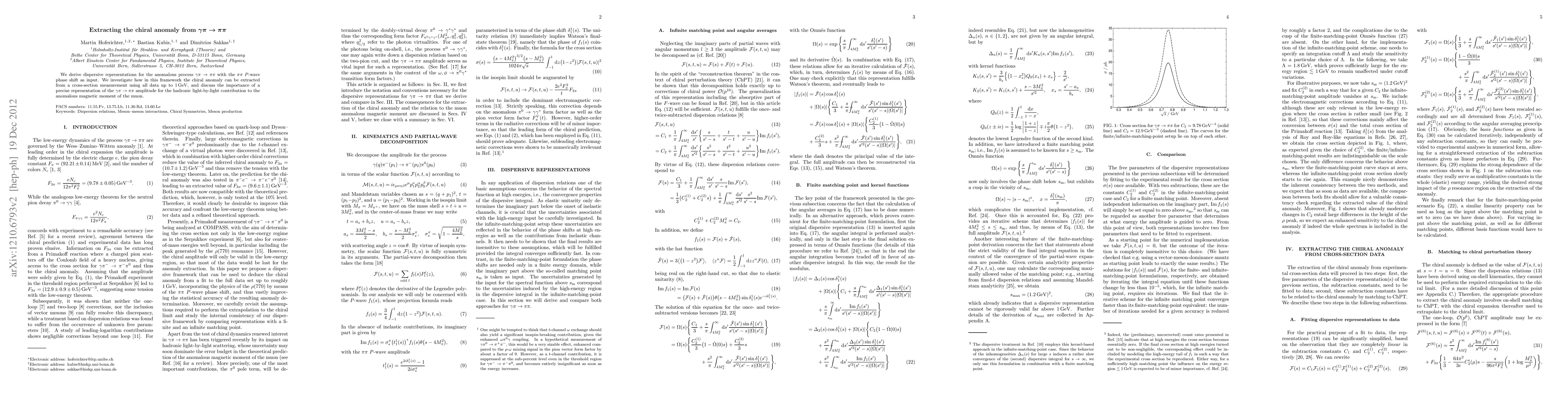 We derive dispersive representations for the anomalous process gamma pi --> pi pi with the pi pi P-wave phase shift as input. We investigate how in this framework the chiral anomaly can be extracted from a cross-section measurement using all data up to 1 GeV, and discuss the importance of a precise representation of the gamma pi --> pi pi amplitude for the hadronic light-by-light contribution to the anomalous magnetic moment of the muon.