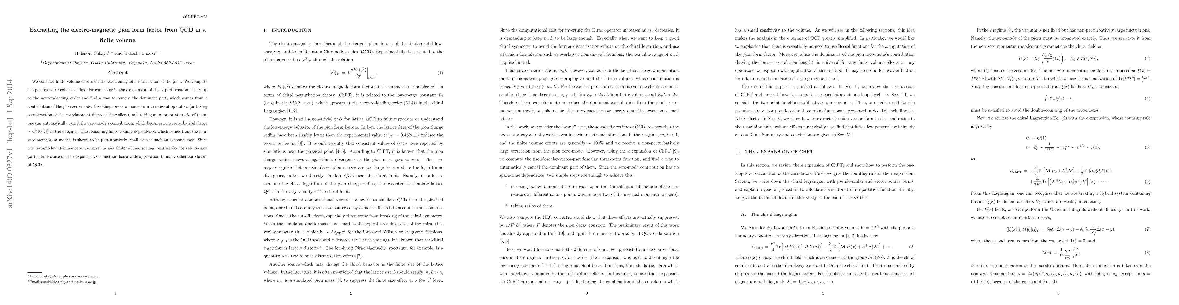 This paper investigates finite volume effects on the electromagnetic pion form factor using chiral perturbation theory, finding a method to remove the dominant zero-mode contribution. The method involves inserting non-zero momentum into relevant operators, which effectively cancels the zero-mode's large non-perturbative effect, leaving a perturbatively small finite volume dependence.