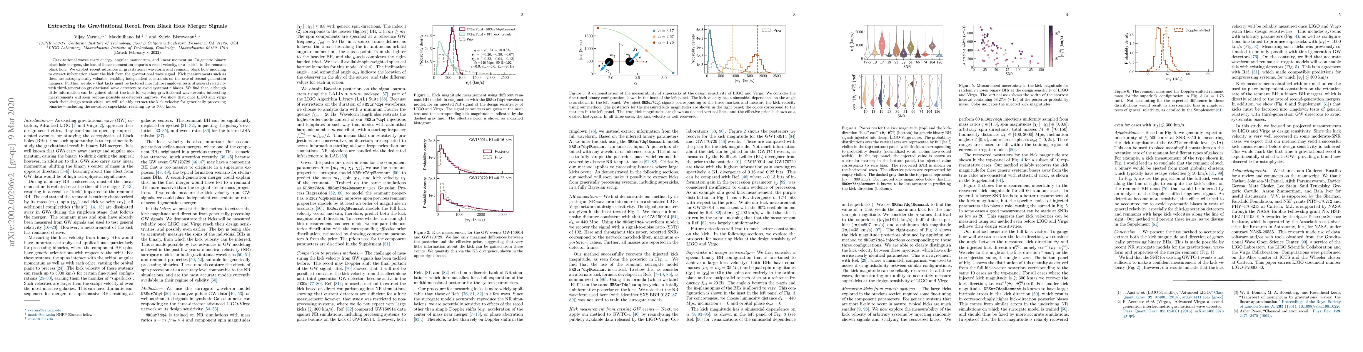 This paper details a method to extract gravitational recoil velocities from black hole merger signals, crucial for understanding the dynamics of binary black hole systems. With improved gravitational wave detectors, future measurements will enable independent merger rate constraints and avoid biases in general relativity tests.