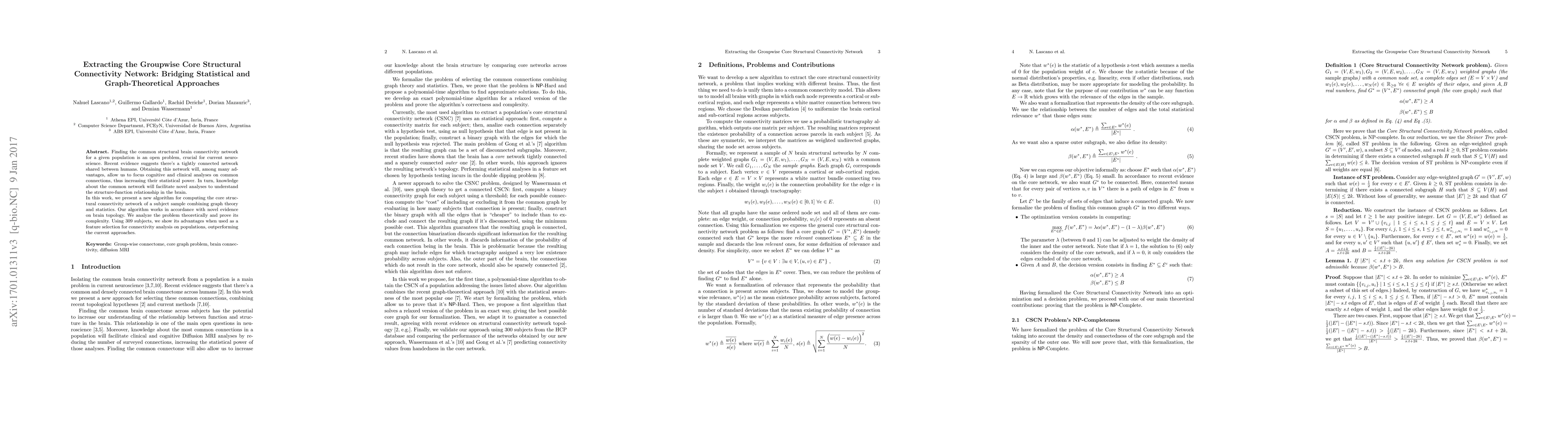This paper introduces a novel algorithm that merges statistical and graph-theoretical approaches to extract the groupwise core structural connectivity network in the brain. The proposed method outperforms existing techniques, as demonstrated through analysis of 309 subjects, enhancing the statistical power of cognitive and clinical studies.