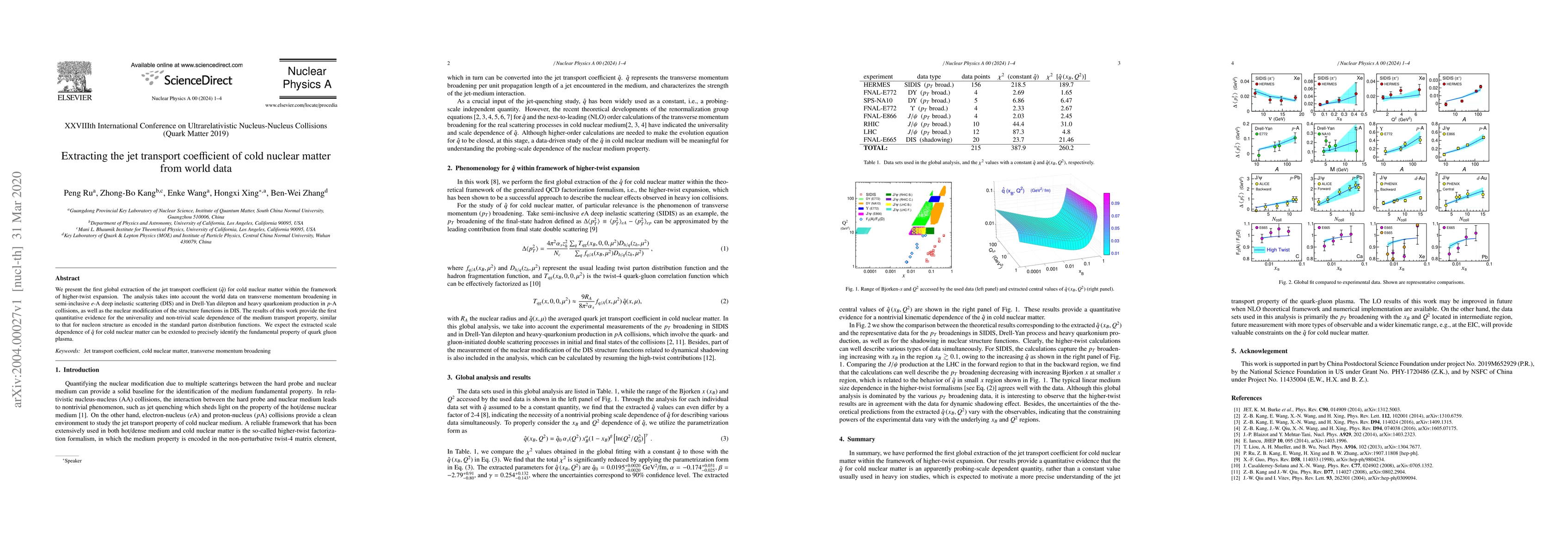 Researchers extracted the jet transport coefficient for cold nuclear matter from global data on particle collisions, revealing a non-trivial scale dependence similar to nucleon structure functions.