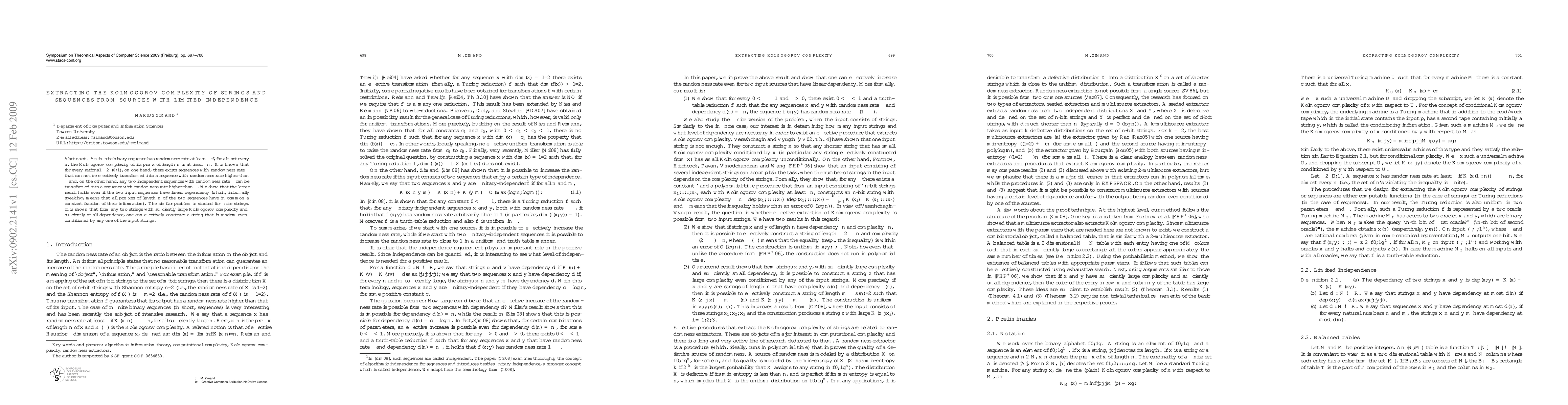 This paper explores the extraction of Kolmogorov complexity from binary sequences with limited independence, demonstrating that combining two dependent sequences can still yield a higher randomness rate. It also extends the findings to finite strings, showing that sufficiently complex, yet slightly dependent strings can be combined to produce a conditionally random string.