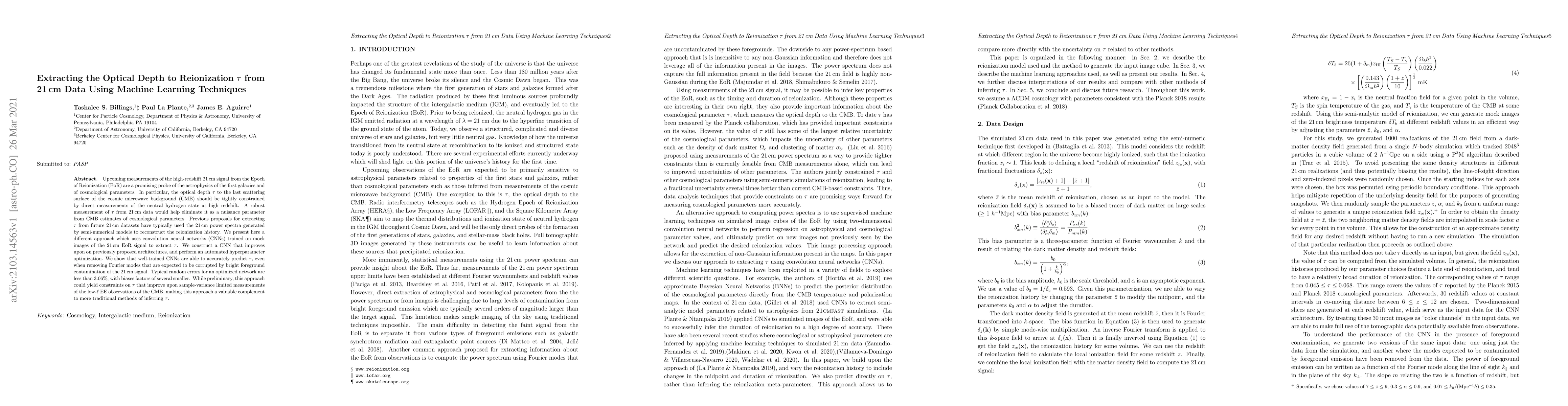 This paper proposes using convolutional neural networks (CNNs) to extract the optical depth $\tau$ to the last scattering surface from high-redshift 21 cm data during the Epoch of Reionization. The CNNs, trained on mock 21 cm images, demonstrate the ability to accurately predict $\tau$ with errors less than $3.06\%$, suggesting this machine learning approach could complement traditional methods for inferring cosmological parameters.