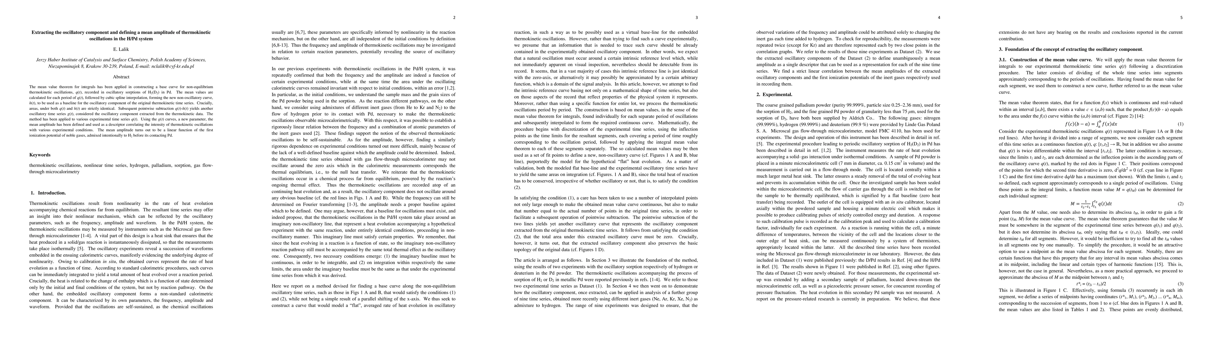 This paper applies the mean value theorem to construct a baseline curve for thermokinetic oscillations in H/Pd systems, extracting the oscillatory component and defining a mean amplitude. The mean amplitude correlates linearly with the first ionization potential of noble gases admixed to H2.