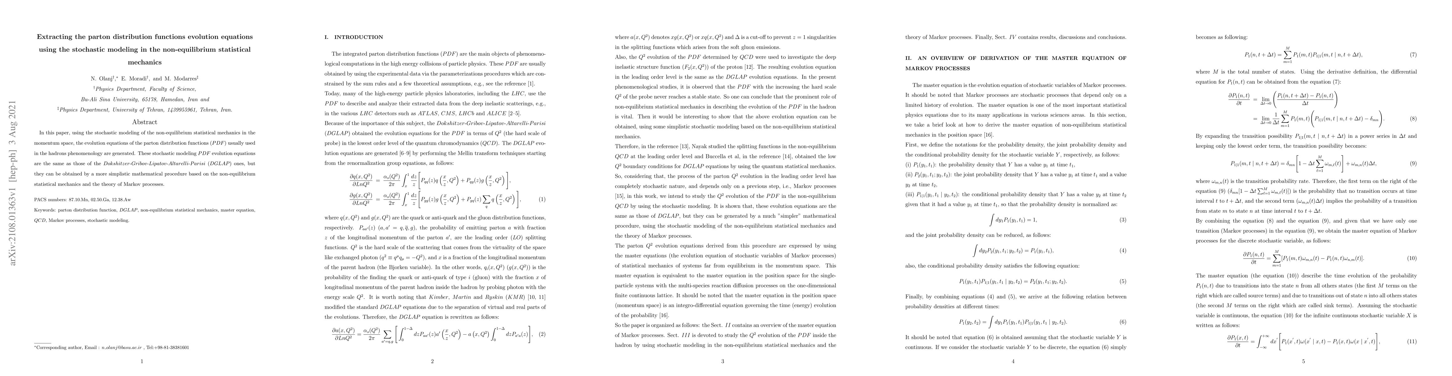 This paper derives the evolution equations for parton distribution functions (PDF) using stochastic modeling in non-equilibrium statistical mechanics, achieving results similar to the DGLAP equations through a simpler mathematical approach based on Markov processes.
