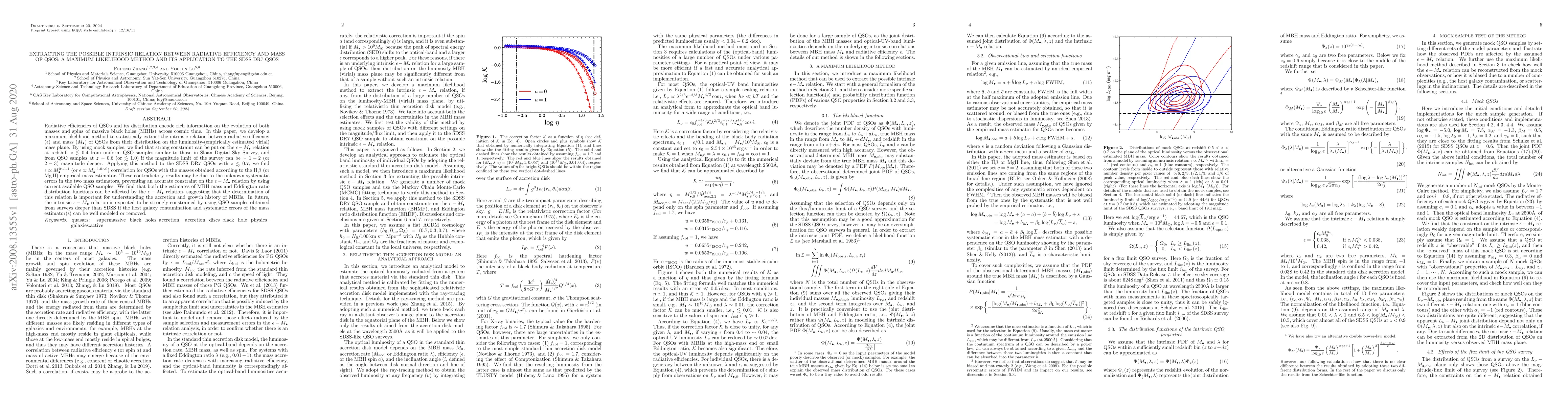 This research introduces a maximum likelihood method to extract the intrinsic relation between radiative efficiency and mass of Quasi-Stellar Objects (QSOs). Applied to SDSS DR7 QSOs, it finds a possible correlation between radiative efficiency and mass, though with contradictory results possibly due to unknown systematic errors in mass estimator(s). The study emphasizes the importance of accurately determining this relation for understanding massive black hole accretion and growth history, suggesting deeper surveys could provide stronger constraints in the future.