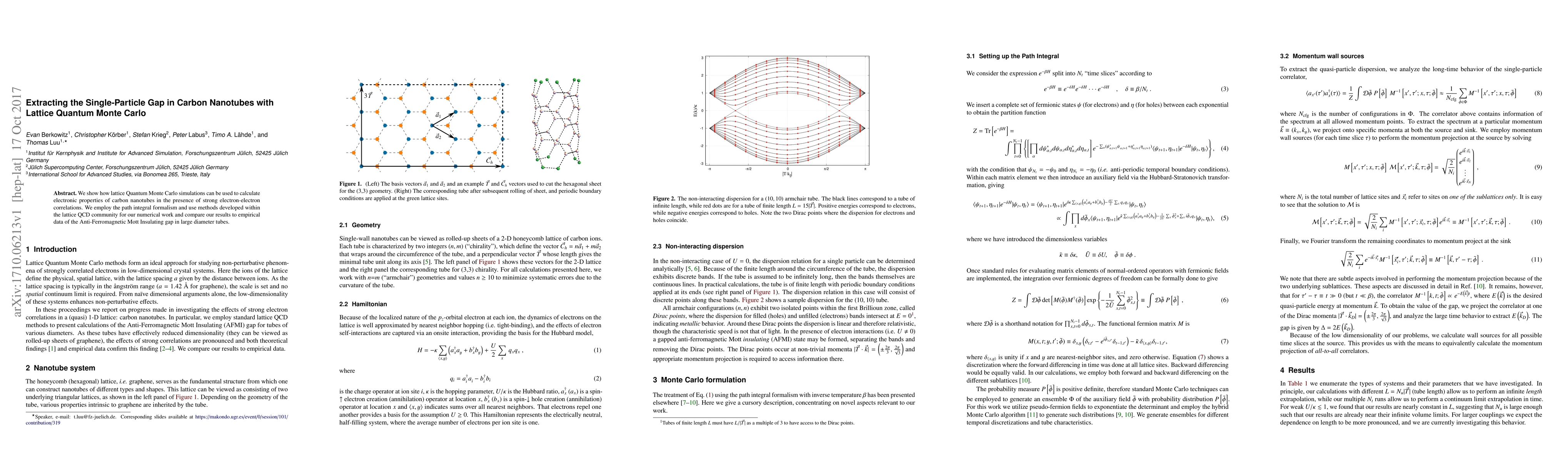 Researchers used lattice Quantum Monte Carlo simulations to calculate electronic properties of carbon nanotubes with strong electron-electron correlations, finding a single-particle gap comparable to empirical data for large diameter tubes.