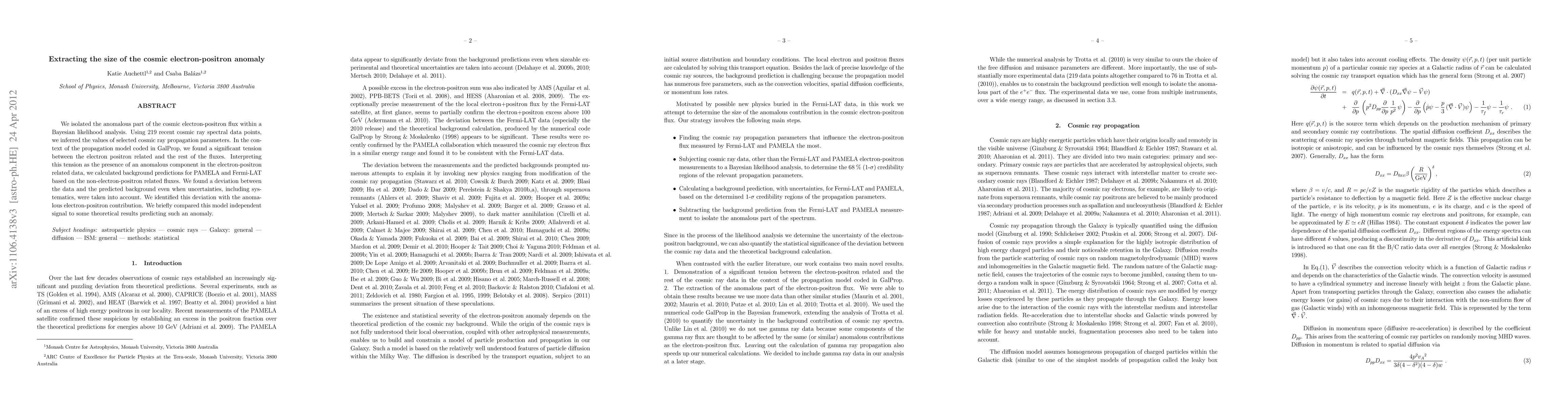 We isolated the anomalous part of the cosmic electron-positron flux within a Bayesian likelihood analysis. Using 219 recent cosmic ray spectral data points, we inferred the values of selected cosmic ray propagation parameters. In the context of the propagation model coded in GalProp, we found a significant tension between the electron positron related and the rest of the fluxes. Interpreting this tension as the presence of an anomalous component in the electron-positron related data, we calculated background predictions for PAMELA and Fermi-LAT based on the non-electron-positron related fluxes. We found a deviation between the data and the predicted background even when uncertainties, including systematics, were taken into account. We identified this deviation with the anomalous electron-positron contribution. We briefly compared this model independent signal to some theoretical results predicting such an anomaly.