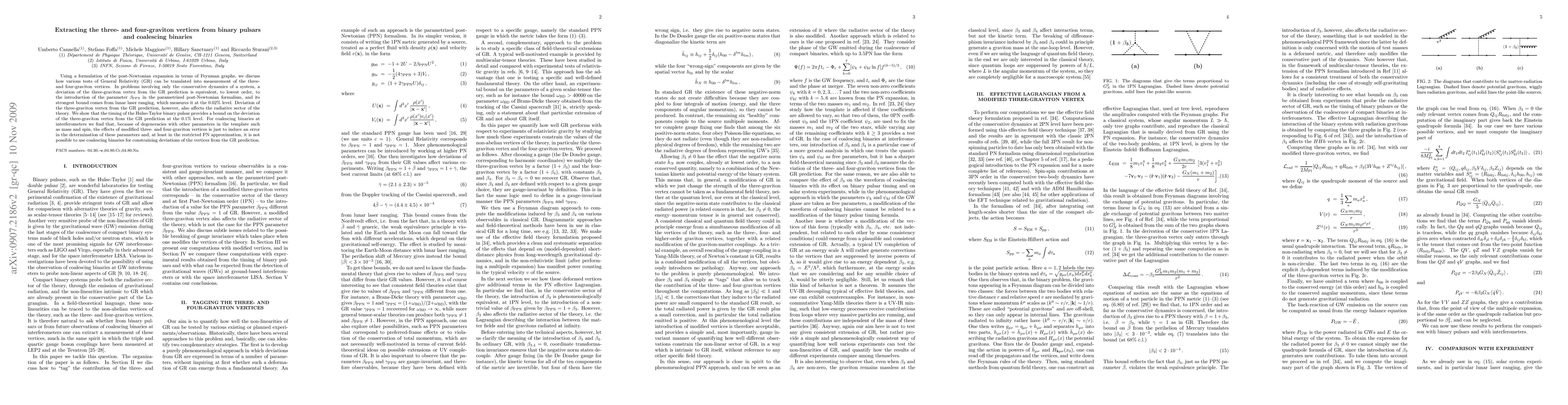 Using a formulation of the post-Newtonian expansion in terms of Feynman graphs, we discuss how various tests of General Relativity (GR) can be translated into measurement of the three- and four-graviton vertices. In problems involving only the conservative dynamics of a system, a deviation of the three-graviton vertex from the GR prediction is equivalent, to lowest order, to the introduction of the parameter beta_{PPN} in the parametrized post-Newtonian formalism, and its strongest bound comes from lunar laser ranging, which measures it at the 0.02% level. Deviation of the three-graviton vertex from the GR prediction, however, also affects the radiative sector of the theory. We show that the timing of the Hulse-Taylor binary pulsar provides a bound on the deviation of the three-graviton vertex from the GR prediction at the 0.1% level. For coalescing binaries at interferometers we find that, because of degeneracies with other parameters in the template such as mass and spin, the effects of modified three- and four-graviton vertices is just to induce an error in the determination of these parameters and, at least in the restricted PN approximation, it is not possible to use coalescing binaries for constraining deviations of the vertices from the GR prediction.