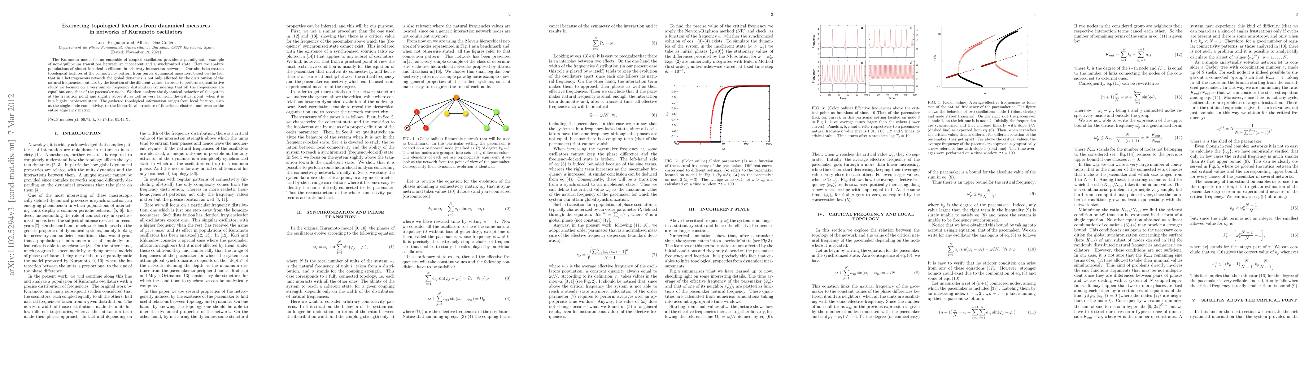 The Kuramoto model for an ensemble of coupled oscillators provides a paradigmatic example of non-equilibrium transitions between an incoherent and a synchronized state. Here we analyze populations of almost identical oscillators in arbitrary interaction networks. Our aim is to extract topological features of the connectivity pattern from purely dynamical measures, based on the fact that in a heterogeneous network the global dynamics is not only affected by the distribution of the natural frequencies, but also by the location of the different values. In order to perform a quantitative study we focused on a very simple frequency distribution considering that all the frequencies are equal but one, that of the pacemaker node. We then analyze the dynamical behavior of the system at the transition point and slightly above it, as well as very far from the critical point, when it is in a highly incoherent state. The gathered topological information ranges from local features, such as the single node connectivity, to the hierarchical structure of functional clusters, and even to the entire adjacency matrix.