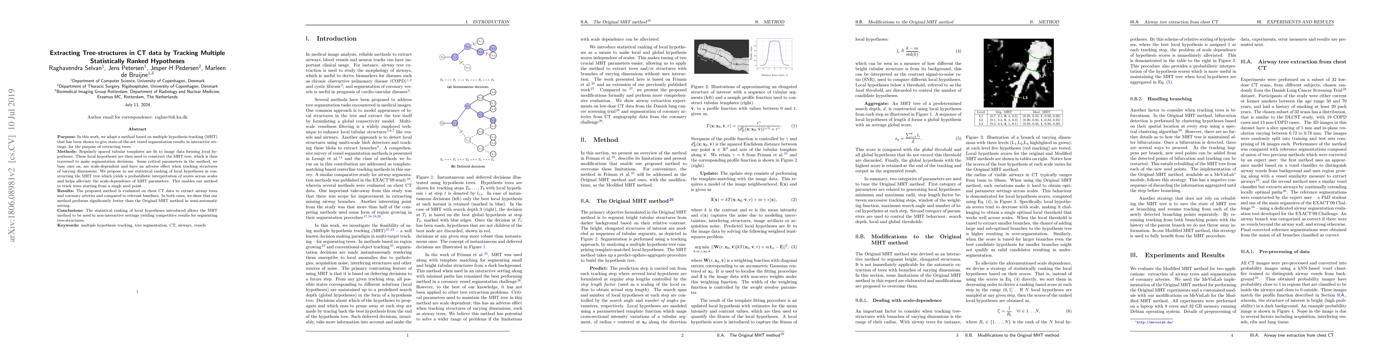 In this work, we adapt a method based on multiple hypothesis tracking (MHT) that has been shown to give state-of-the-art vessel segmentation results in interactive settings, for the purpose of extracting trees. Regularly spaced tubular templates are fit to image data forming local hypotheses. These local hypotheses are used to construct the MHT tree, which is then traversed to make segmentation decisions. However, some critical parameters in this method are scale-dependent and have an adverse effect when tracking structures of varying dimensions. We propose to use statistical ranking of local hypotheses in constructing the MHT tree, which yields a probabilistic interpretation of scores across scales and helps alleviate the scale-dependence of MHT parameters. This enables our method to track trees starting from a single seed point. Our method is evaluated on chest CT data to extract airway trees and coronary arteries. In both cases, we show that our method performs significantly better than the original MHT method.