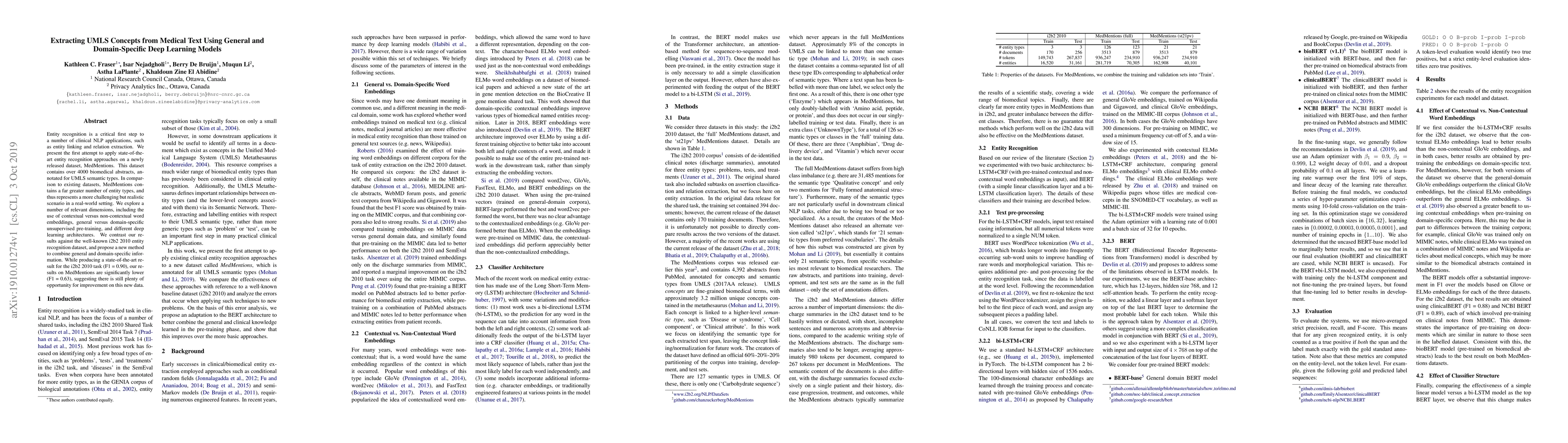 This paper explores advanced deep learning models for extracting UMLS concepts from medical text using a new dataset, MedMentions, which presents a more challenging scenario due to its diverse entity types. The study compares general and domain-specific pre-training methods and finds room for improvement, achieving a state-of-the-art F1 score of 0.90 on the i2b2 2010 dataset but only 0.63 on MedMentions.