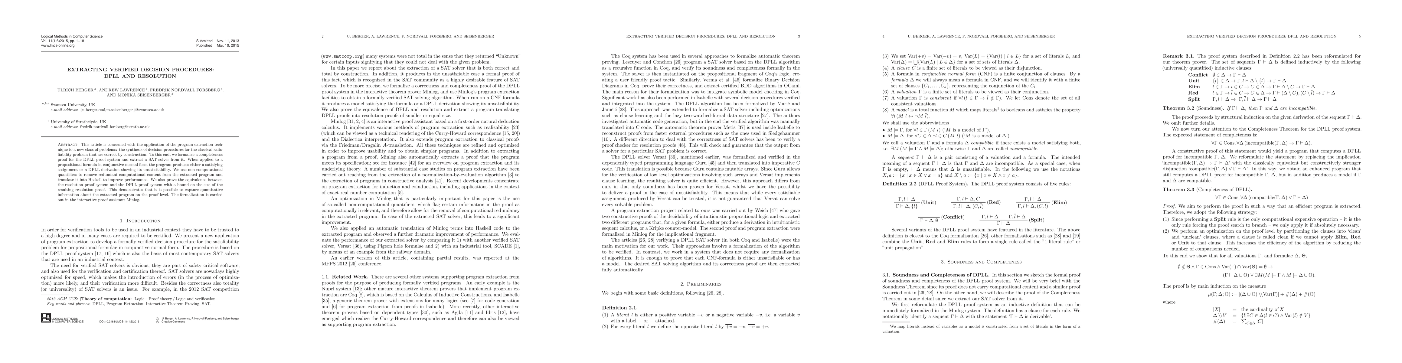 Researchers developed a method to extract verified decision procedures for solving Boolean satisfiability problems using DPLL and Resolution proof systems, enabling more efficient and accurate solutions.