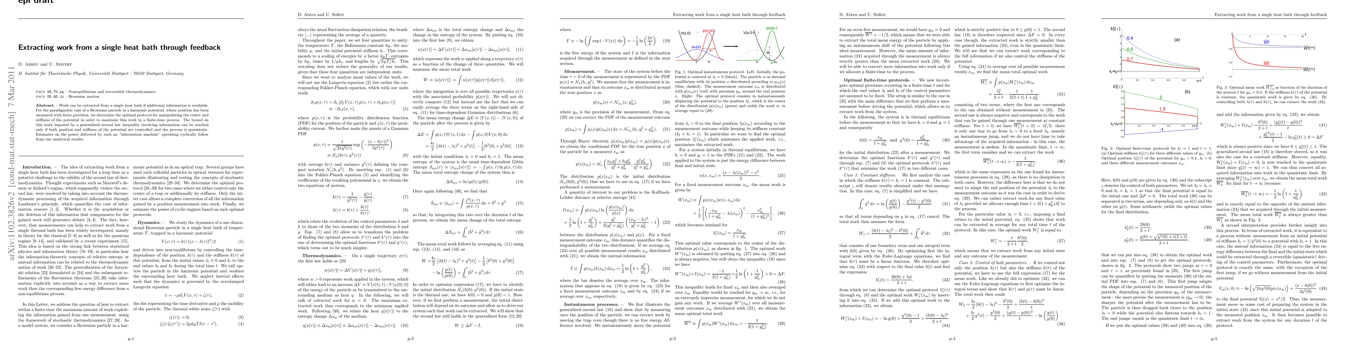 The paper presents a detailed analysis of optimal finite-time protocols for work extraction from a single heat bath using measured position information, incorporating both position and stiffness control to maximize work output.