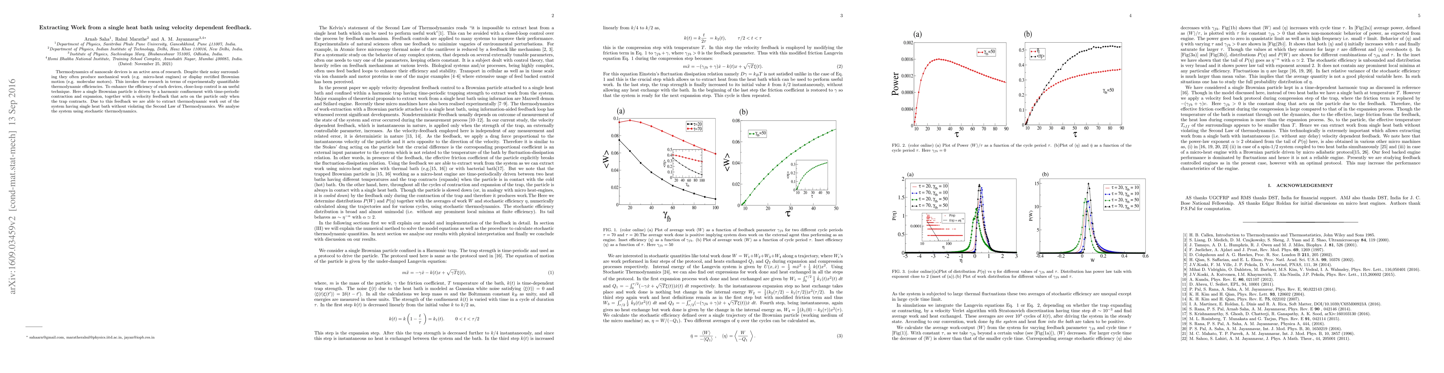 Thermodynamics of nanoscale devices is an active area of research. Despite their noisy surround- ing they often produce mechanical work (e.g. micro-heat engines) or display rectified Brownian motion (e.g. molecular motors). This invokes the research in terms of experimentally quantifiable thermodynamic efficiencies. To enhance the efficiency of such devices, close-loop control is an useful technique. Here a single Brownian particle is driven by a harmonic confinement with time-periodic contraction and expansion, together with a velocity feedback that acts on the particle only when the trap contracts. Due to this feedback we are able to extract thermodynamic work out of the system having single heat bath without violating the Second Law of Thermodynamics. We analyse the system using stochastic thermodynamics.