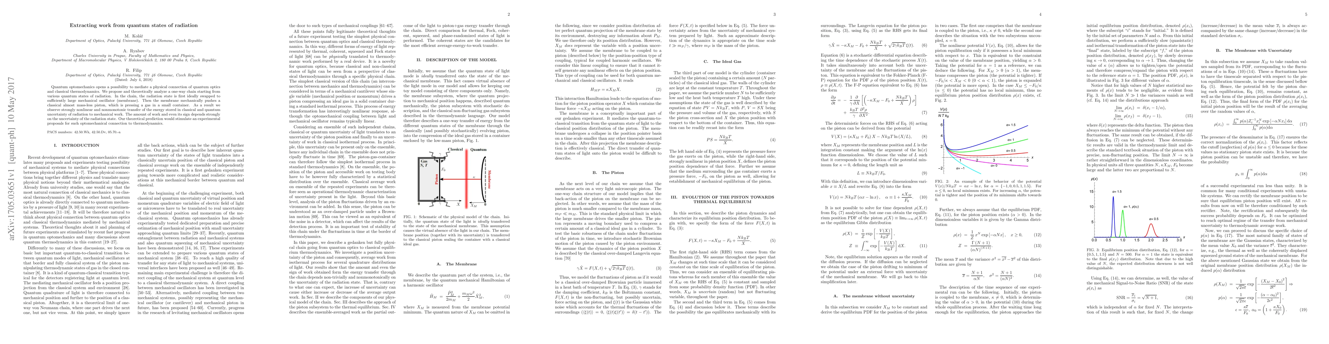 Researchers propose a theoretical framework for harnessing quantum states of radiation to perform mechanical work, with energy transfer depending on the uncertainty of the radiation state. This optomechanical connection could potentially bridge quantum optics and classical thermodynamics.