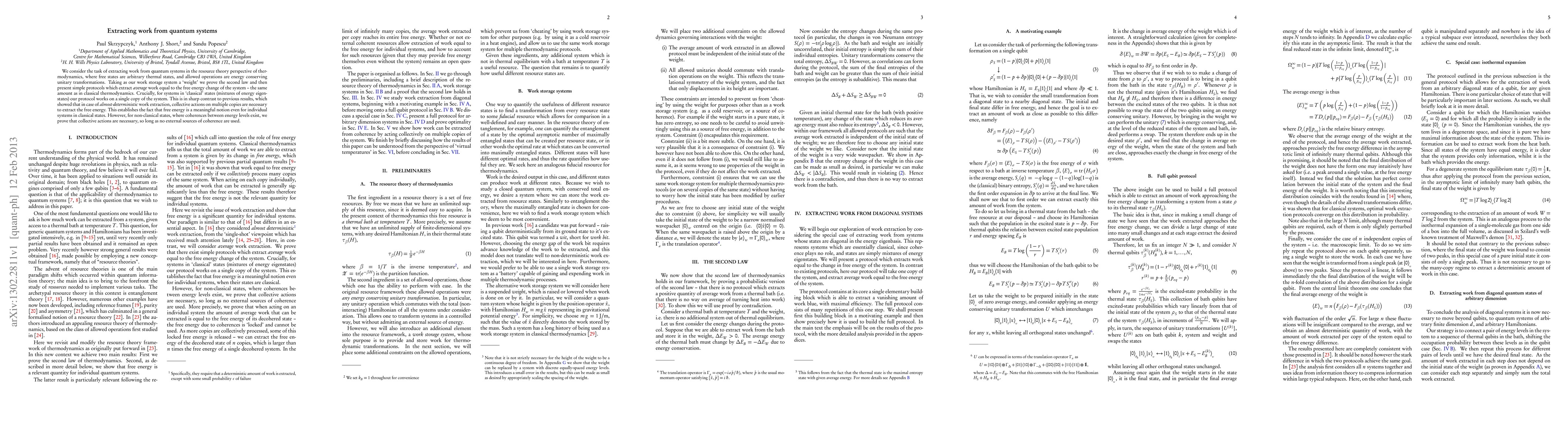 Researchers develop a protocol to extract work from quantum systems, showing that free energy can be calculated for individual classical systems and demonstrating the need for collective actions in non-classical states.