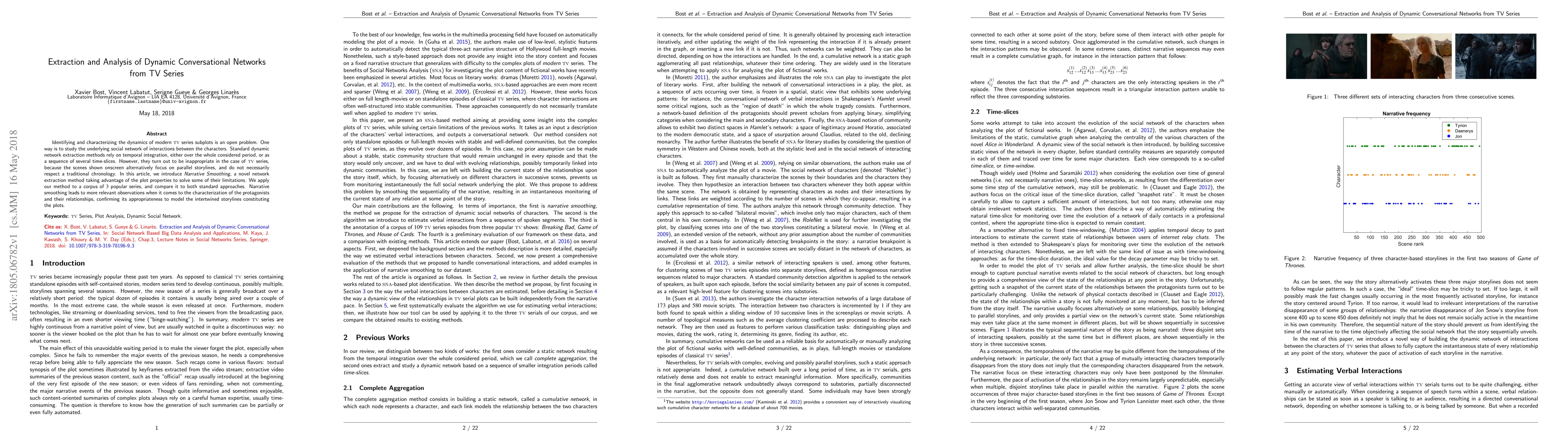 This paper introduces Narrative Smoothing, a novel method for extracting dynamic conversational networks from TV series, addressing the limitations of standard approaches that do not account for parallel storylines. The method is applied to three popular series, demonstrating its effectiveness in characterizing character interactions and relationships.