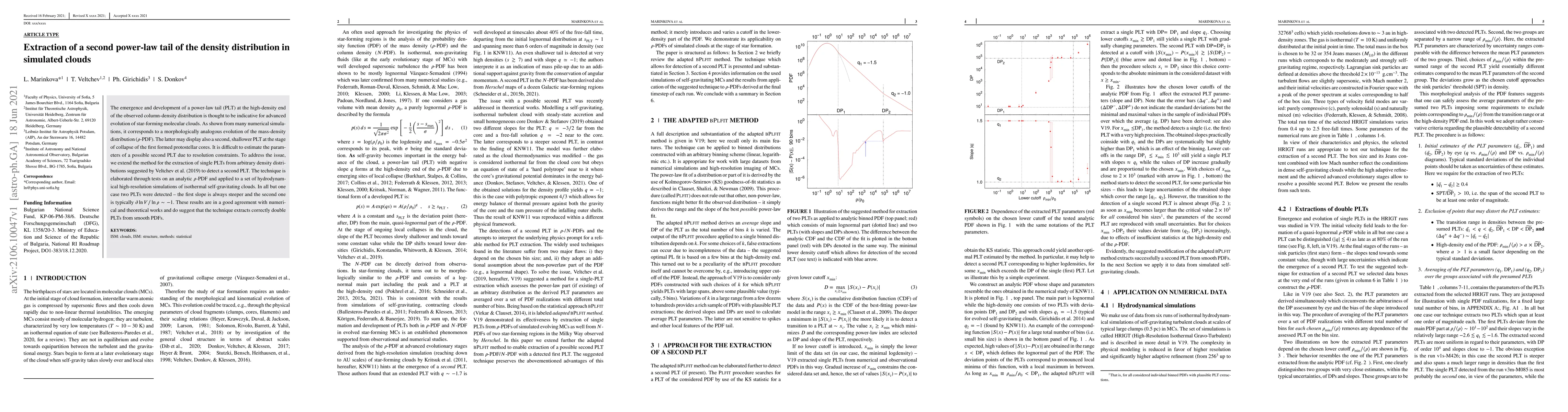 This paper develops a method to extract a second, shallower power-law tail from the mass-density distribution in simulated star-forming molecular clouds, showing that two such tails often emerge during cloud evolution. The technique was validated through high-resolution simulations and aligns well with existing numerical and theoretical studies.