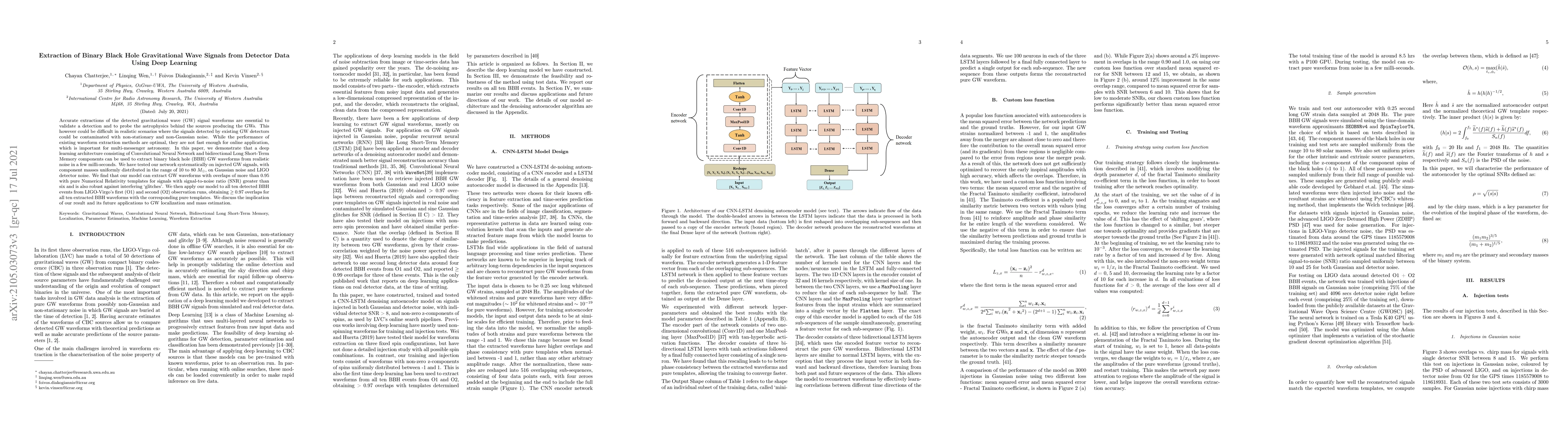 A deep learning model extracted binary black hole gravitational wave signals from detector data in a few milliseconds, achieving overlaps of over 0.95 with pure Numerical Relativity templates for high-SNR signals.