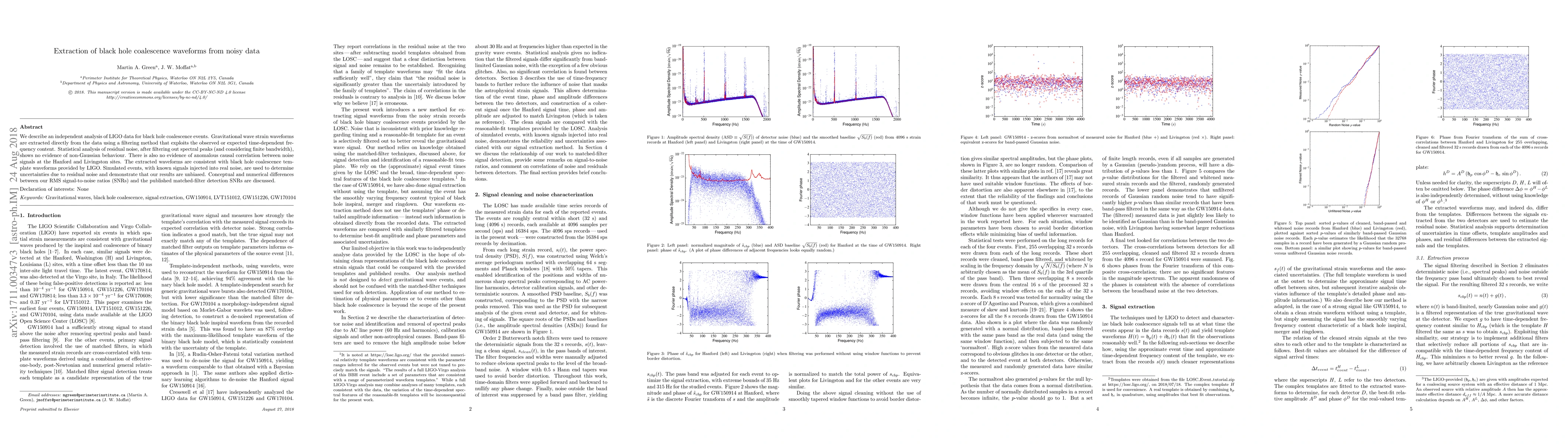 This paper presents an independent analysis of LIGO data to extract black hole coalescence waveforms using a filtering method. The analysis confirms no evidence of non-Gaussian noise and consistent waveforms with LIGO templates, validated by simulated events.