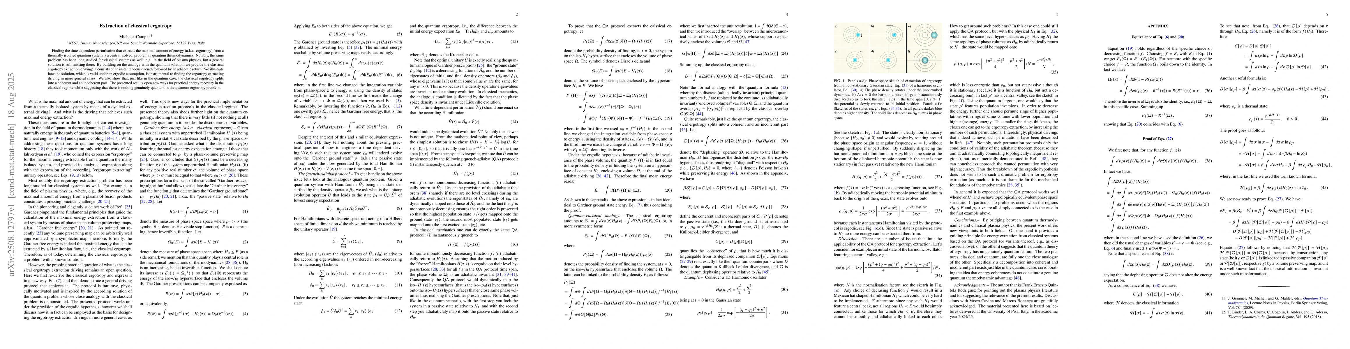 Finding the time dependent perturbation that extracts the maximal amount of energy (a.k.a. ergotropy) from a thermally isolated quantum system is a central, solved, problem in quantum thermodynamics. Notably, the same problem has been long studied for classical systems as well, e.g., in the field of plasma physics, but a general solution is still missing there. By building on the analogy with the quantum solution, we provide the classical ergotropy extraction driving: it consists of an instantaneous quench followed by an adiabatic return. We illustrate how the solution, which is valid under an ergodic assumption, is instrumental to finding the ergotropy extracting driving in more general cases. We also show that, just like in the quantum case, the classical ergotropy splits into a coherent and an incoherent part. The presented results open new ways for practical energy recovery in the classical regime while suggesting that there is nothing genuinely quantum in the quantum ergotropy problem.