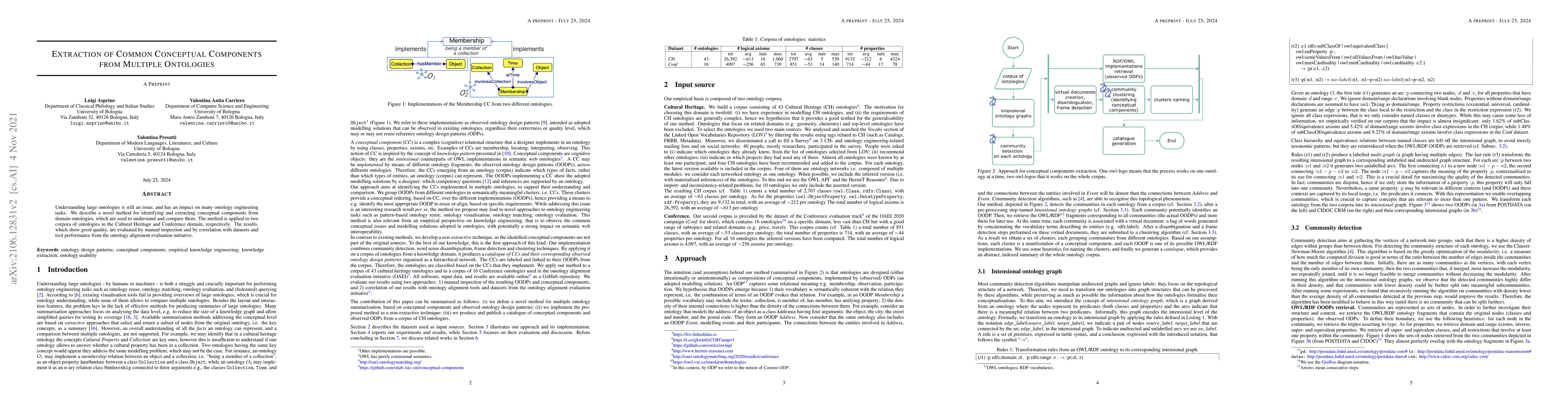 This paper presents a new method for extracting and understanding conceptual components from multiple domain ontologies, applied to Cultural Heritage and Conference domains. Evaluation shows high-quality results, validated by manual inspection and correlation with existing alignment tools.