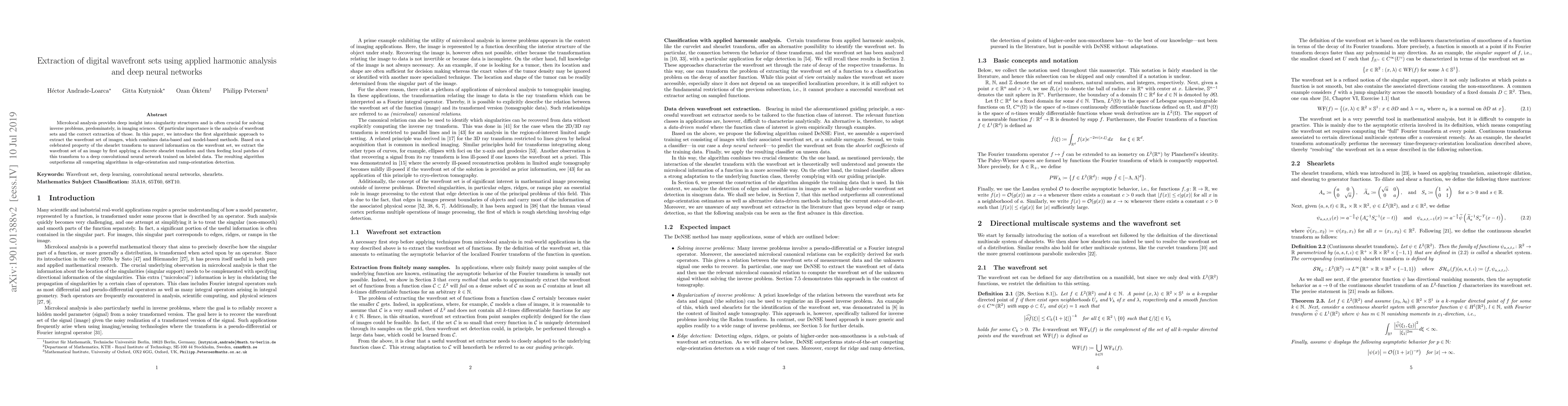 This paper presents an innovative algorithmic approach to extract digital wavefront sets using applied harmonic analysis and deep neural networks, combining discrete shearlet transform and convolutional neural networks to outperform existing methods in edge-orientation and ramp-orientation detection.