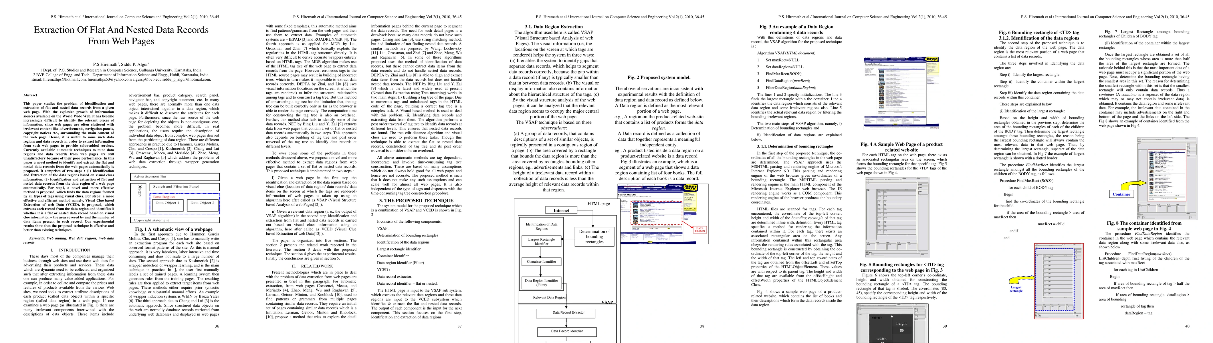 This paper proposes a novel method for automatically identifying and extracting flat and nested data records from web pages, addressing the challenge of cluttered web content. The method involves identifying data regions using visual clues and employing a Visual Clue based Extraction of web Data (VCED) technique to extract records, demonstrating superior performance over existing techniques.