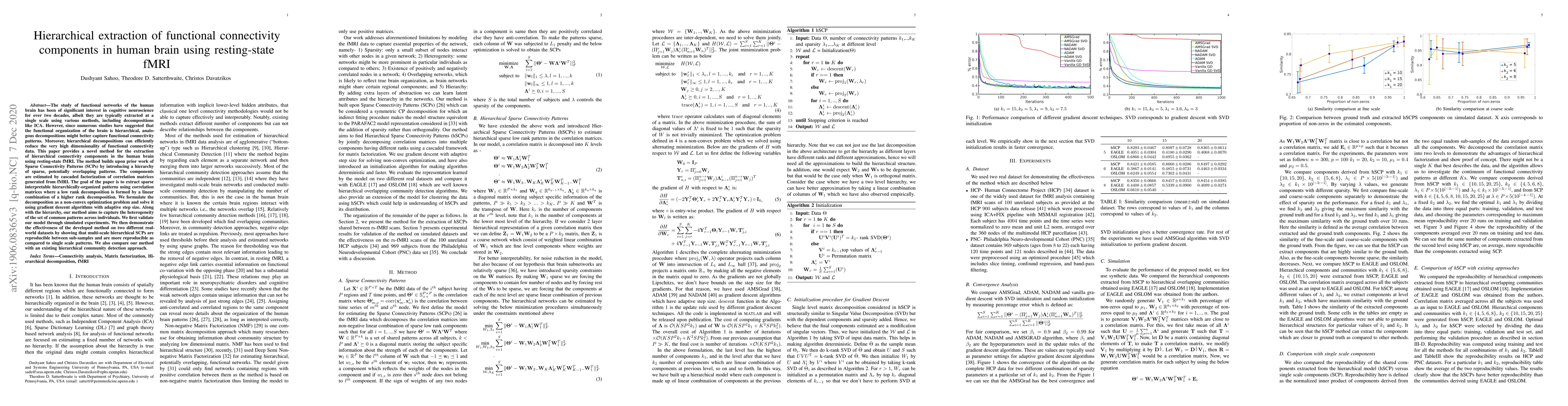 This paper introduces a novel method for extracting hierarchical functional connectivity components from resting-state fMRI data using deep factorization of correlation matrices. The proposed method, based on sparse overlapping patterns, demonstrates higher reproducibility and provides new insights into the functional organization of the human brain compared to existing approaches.
