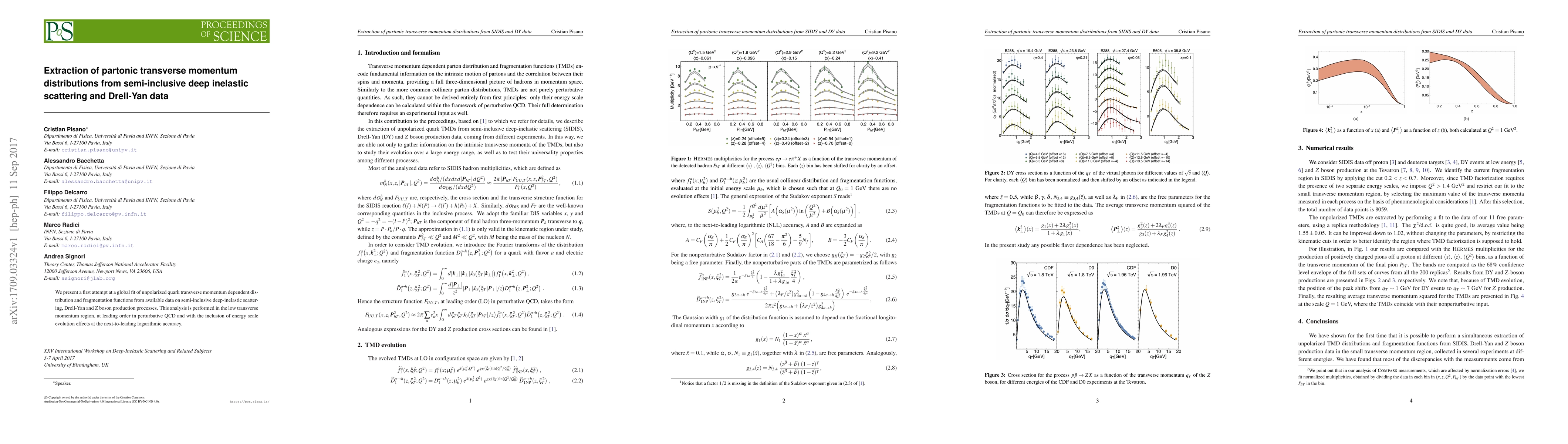This paper presents a global fit of unpolarized quark transverse momentum dependent distributions and fragmentation functions using data from semi-inclusive deep inelastic scattering, Drell-Yan, and $Z$ boson production, focusing on the low transverse momentum region and employing leading order perturbative QCD with next-to-leading logarithmic accuracy.