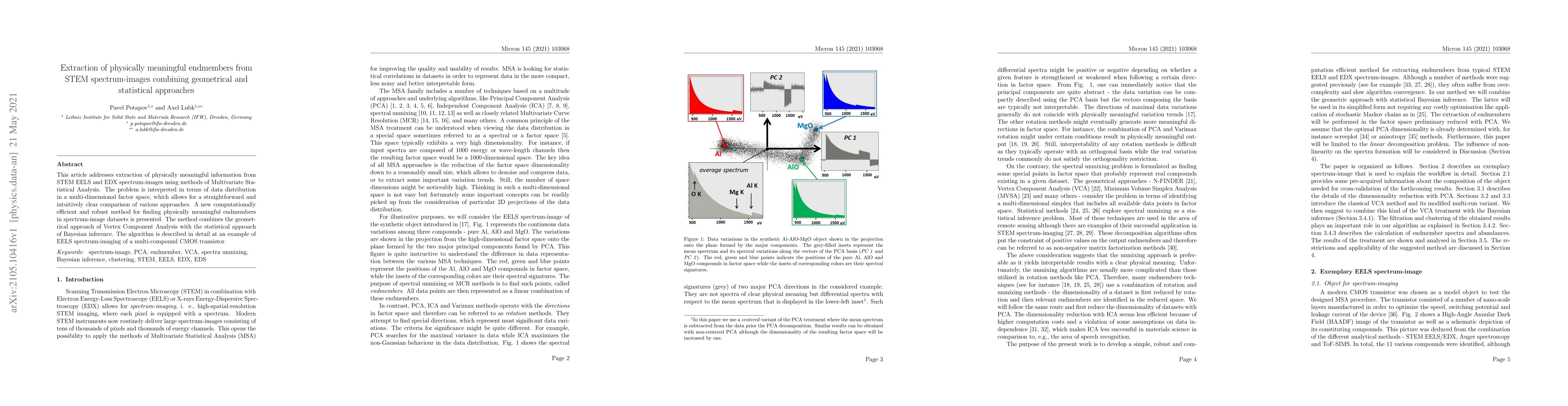 This paper presents a new method combining Vertex Component Analysis and Bayesian inference for extracting physically meaningful endmembers from STEM spectrum-images. The approach leverages multivariate statistical analysis to interpret data distribution in a multi-dimensional factor space, demonstrated through EELS spectrum-imaging of a CMOS transistor.