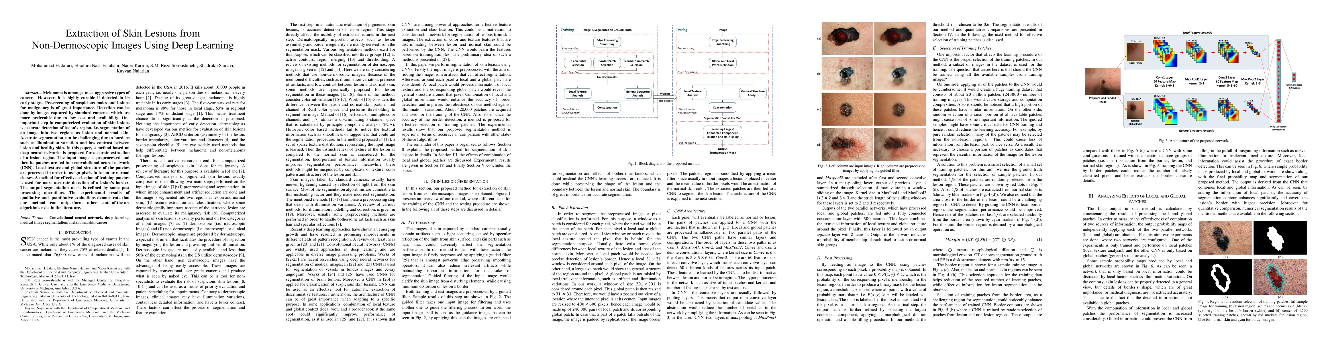 This paper proposes a deep learning-based method using convolutional neural networks (CNNs) to accurately segment skin lesions from non-dermoscopic images, outperforming existing algorithms in both qualitative and quantitative evaluations. The method involves preprocessing, patch-based CNN processing, and post-processing refinements for effective lesion border detection.