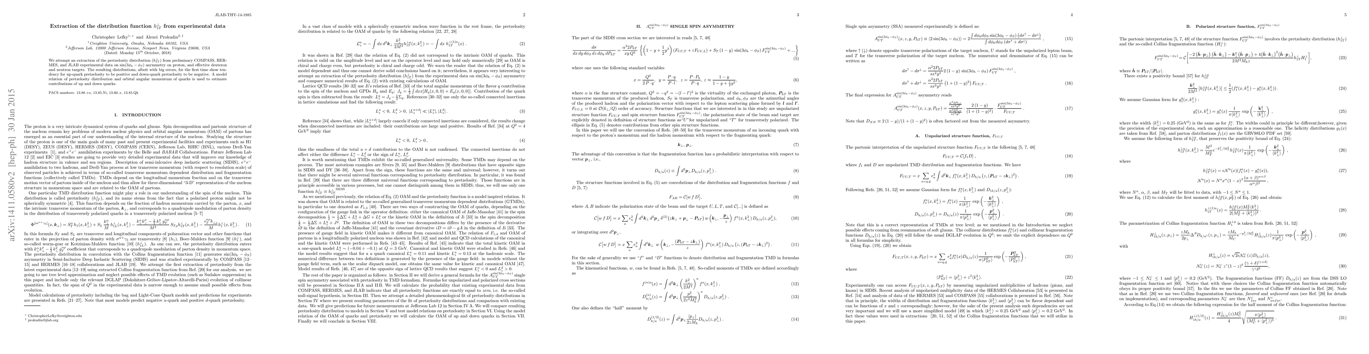 We attempt an extraction of the pretzelosity distribution ($h^{\perp}_{1T}$) from preliminary COMPASS, HERMES, and JLAB experimental data on $\sin(3\phi_h - \phi_S)$ asymmetry on proton, and effective deuteron and neutron targets. The resulting distributions, albeit with big errors, for the first time show tendency for up-quark pretzelosity to be positive and down-quark pretzelosity to be negative. A model relation of pretzelosity distribution and orbital angular momentum of quarks is used to estimate contributions of up and down quarks.