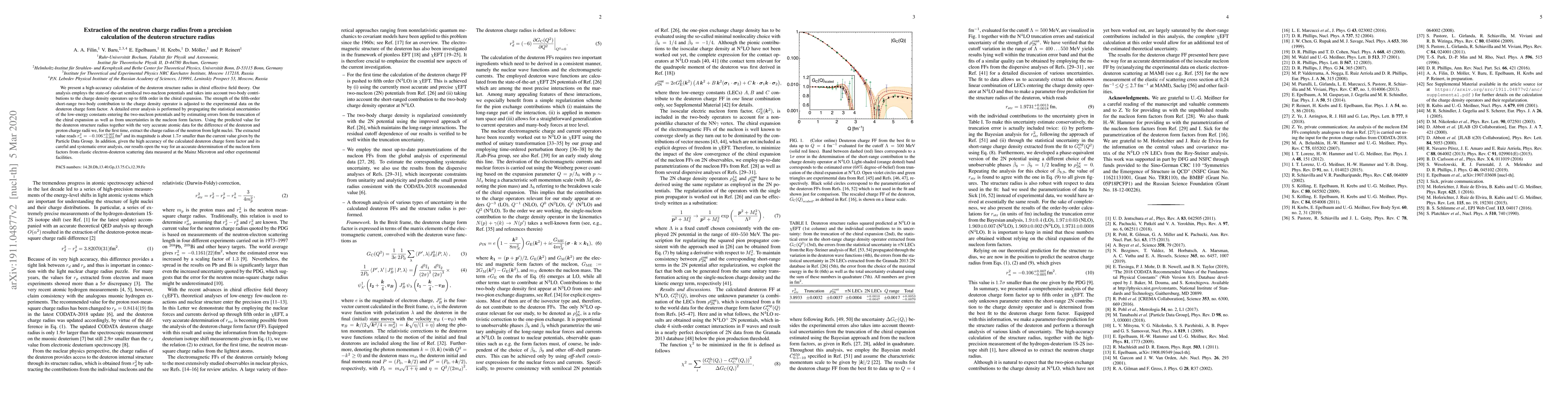 This paper provides a high-accuracy calculation of the deuteron structure radius using chiral effective field theory, leading to the extraction of the neutron charge radius as $r_n^2 = - 0.106 \substack{ +0.007\\ -0.005\\} \, \text{fm}^2$, which is $1.7\sigma$ smaller than the current Particle Data Group value. The study also suggests potential for precise determination of nucleon form factors from future experiments.
