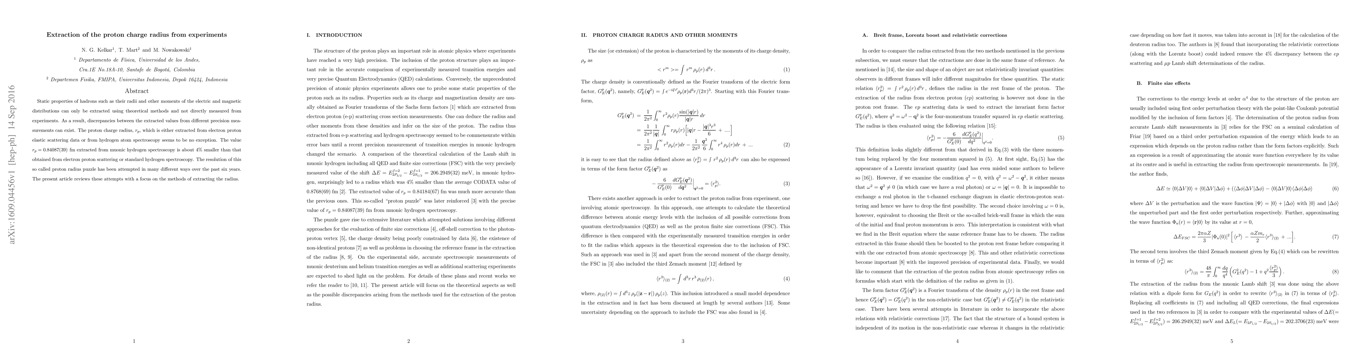 Static properties of hadrons such as their radii and other moments of the electric and magnetic distributions can only be extracted using theoretical methods and not directly measured from experiments. As a result, discrepancies between the extracted values from different precision measurements can exist. The proton charge radius, $r_p$, which is either extracted from electron proton elastic scattering data or from hydrogen atom spectroscopy seems to be no exception. The value $r_p = 0.84087(39)$ fm extracted from muonic hydrogen spectroscopy is about 4% smaller than that obtained from electron proton scattering or standard hydrogen spectroscopy. The resolution of this so called proton radius puzzle has been attempted in many different ways over the past six years. The present article reviews these attempts with a focus on the methods of extracting the radius.