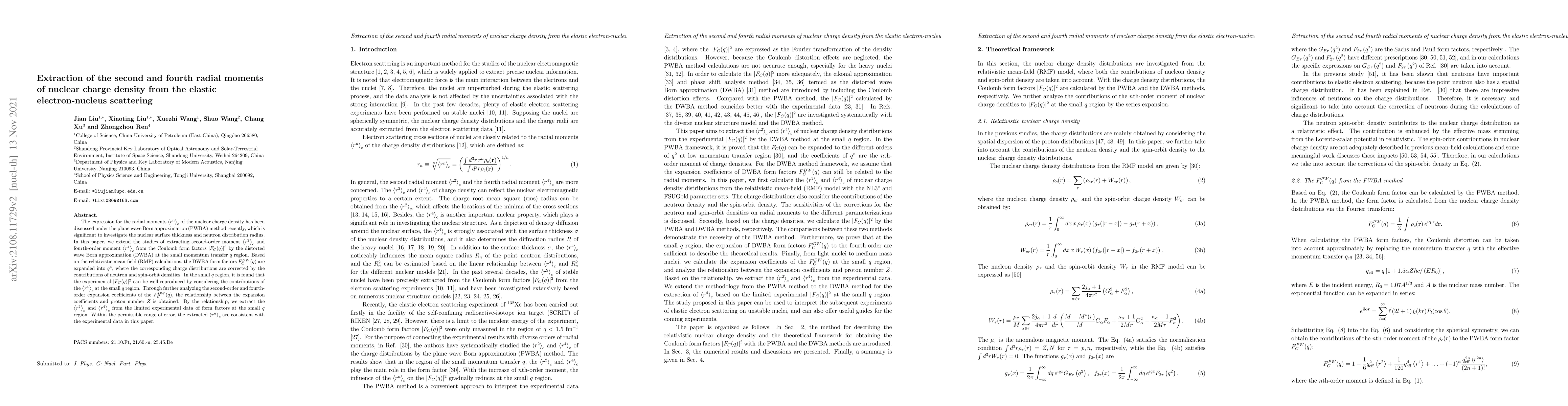 Researchers extracted nuclear charge density moments from elastic electron-nucleus scattering data using distorted wave Born approximation, finding consistent results with experimental data.