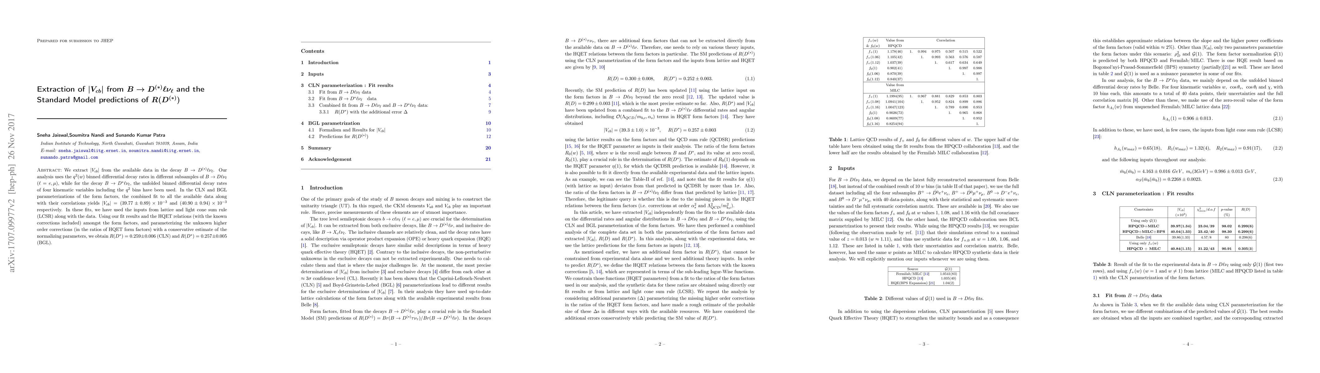We extract $|V_{cb}|$ from the available data in the decay $B \to D^{(*)}\ell\nu_{\ell}$. Our analysis uses the $q^2(w)$ binned differential decay rates in different subsamples of $B\to D\ell\nu_\ell$ ($\ell = e, \mu$), while for the decay $B\to D^*\ell\nu_\ell$, the unfolded binned differential decay rates of four kinematic variables including the $q^2$ bins have been used. In the CLN and BGL parameterizations of the form factors, the combined fit to all the available data along with their correlations yields $|V_{cb}| = (39.77 \pm 0.89)\times 10^{-3}$ and $(40.90 \pm 0.94)\times 10^{-3}$ respectively. In these fits, we have used the inputs from lattice and light cone sum rule (LCSR) along with the data. Using our fit results and the HQET relations (with the known corrections included) amongst the form factors, and parameterizing the unknown higher order corrections (in the ratios of HQET form factors) with a conservative estimate of the normalizing parameters, we obtain $R(D^{*}) = 0.259 \pm 0.006$ (CLN) and $R(D^*) = 0.257 \pm 0.005$ (BGL).